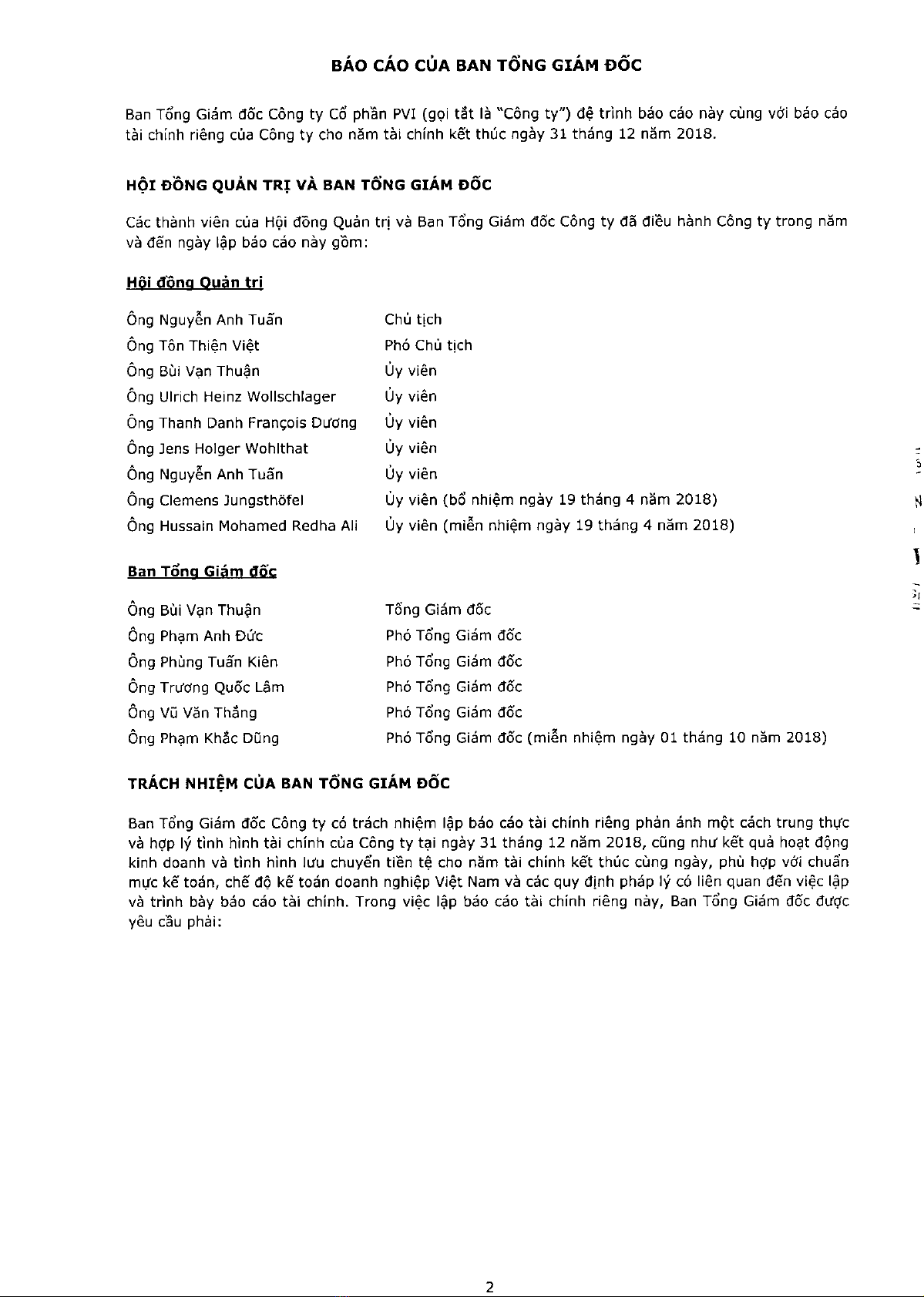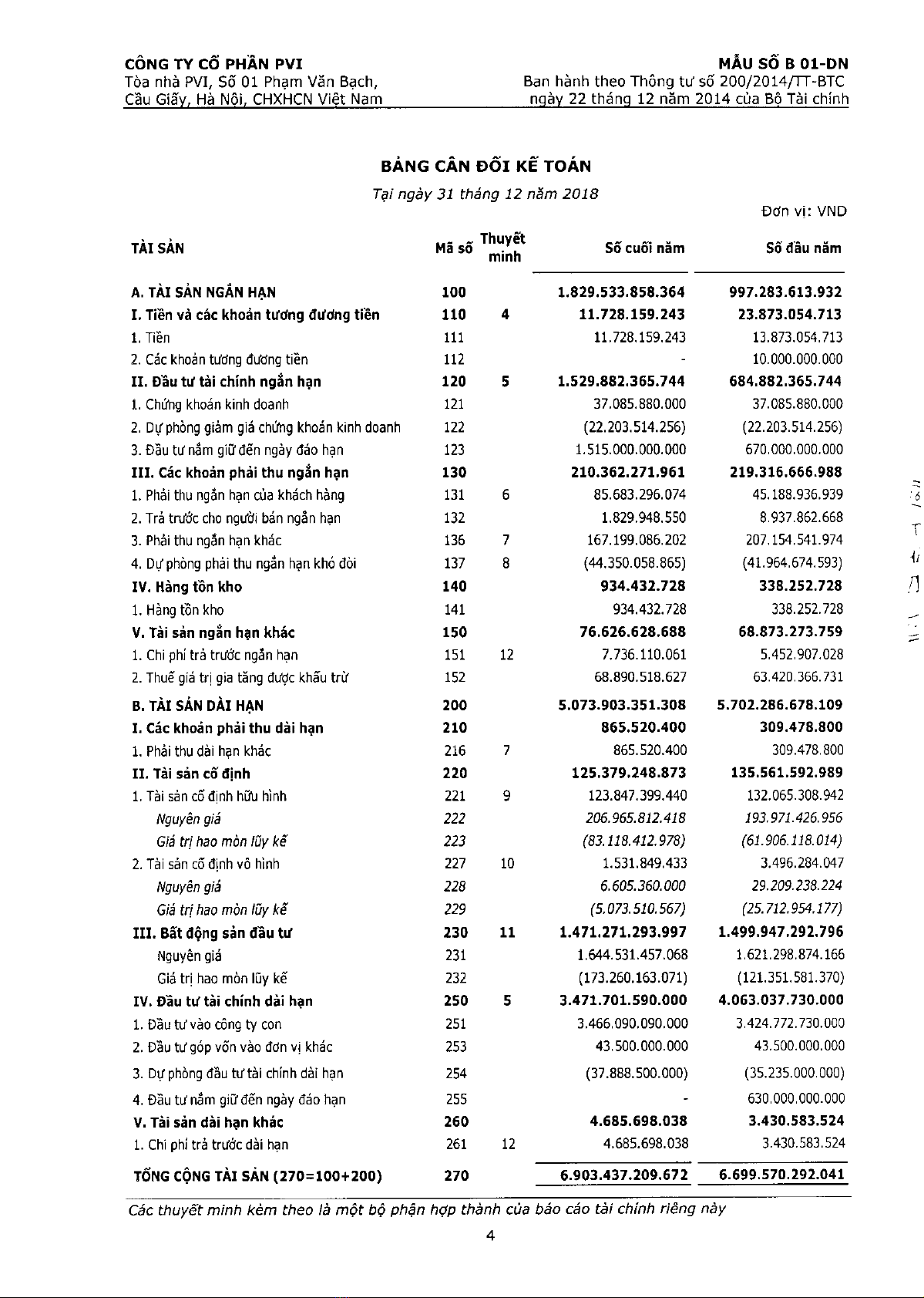 Báo cáo tài chính riêng cho quý 4 năm 2018 và năm tài chính kết thúc ngày 31/12/2018 - Công ty cổ phần PVI
