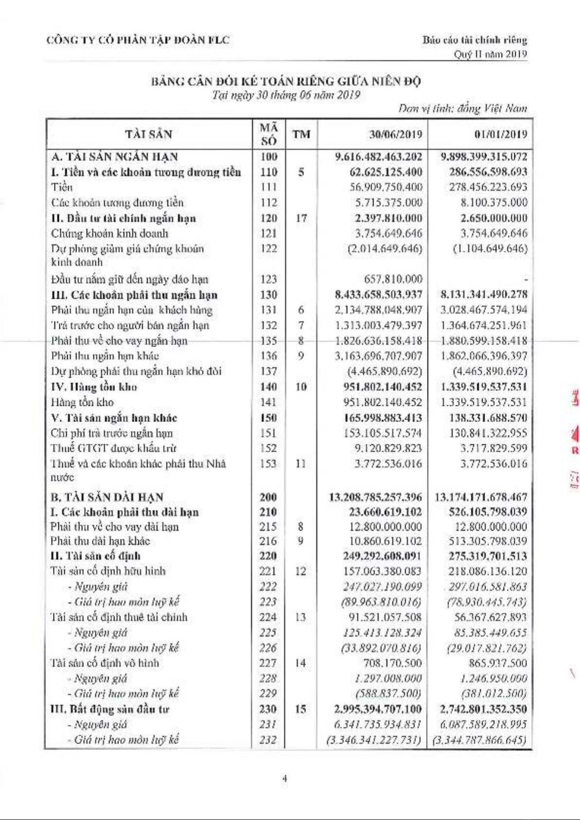 Báo cáo tài chính riêng quý 2 năm 2019 - Công ty cổ phần tập đoàn FLC