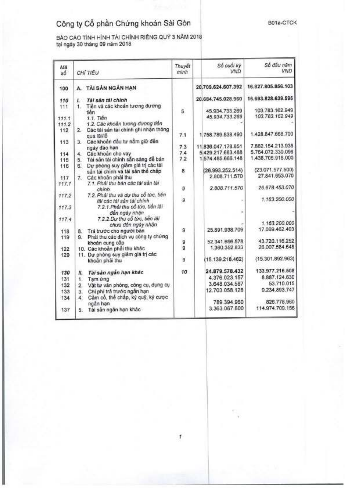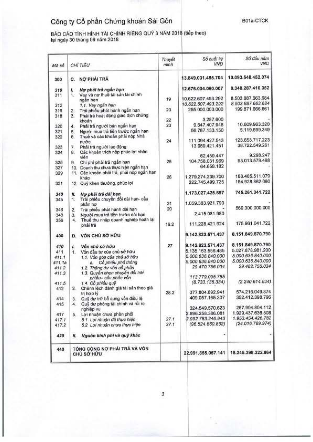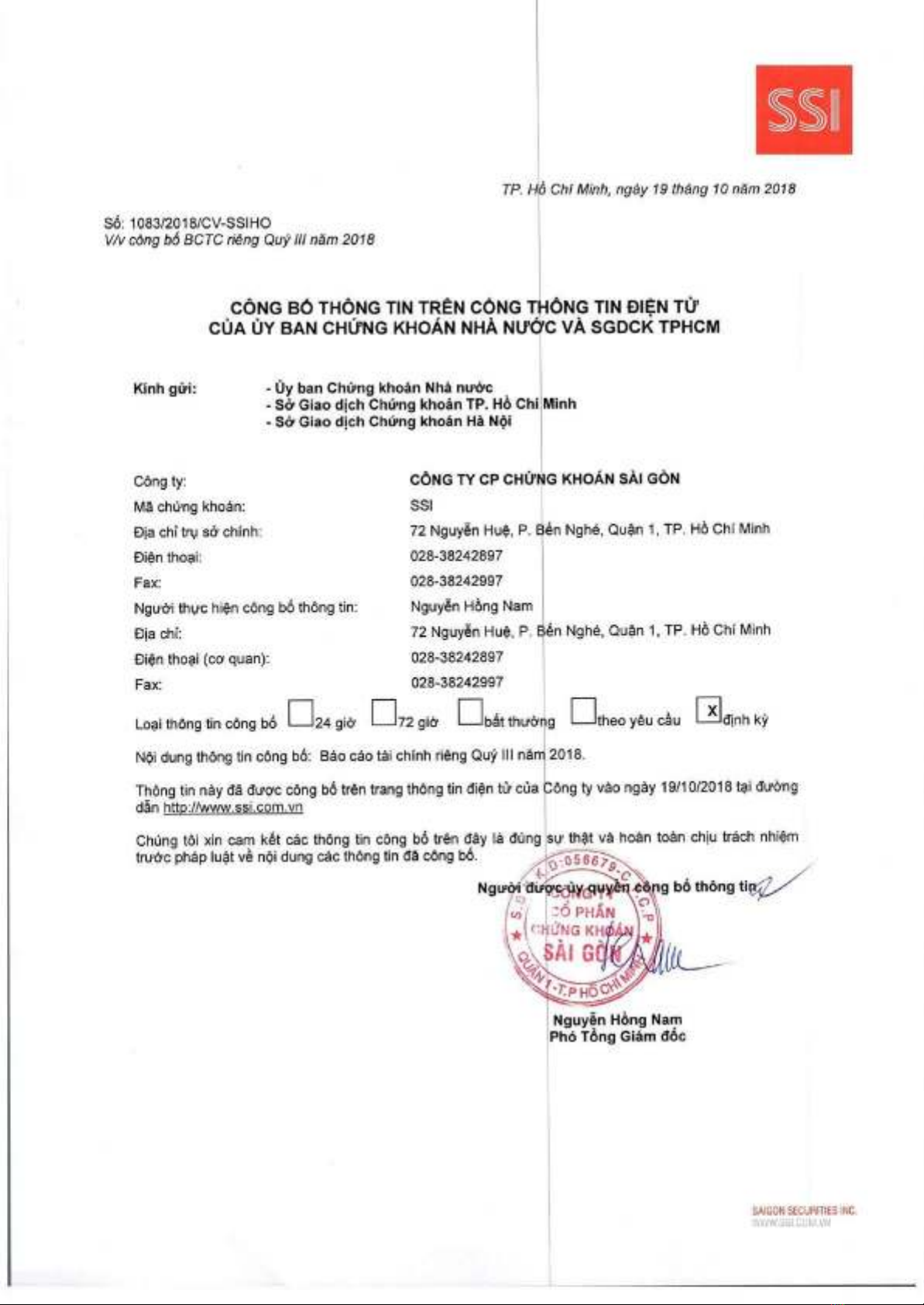 Báo cáo tài chính riêng quý 3 năm 2018 - Công ty cổ phần Chứng khoán SSI