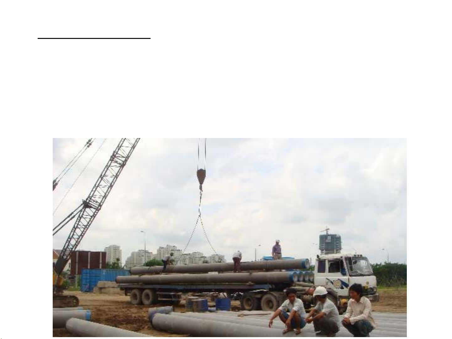 vận chuyển và thi công ( đóng, ép cọc ). Giữa chiều dài và