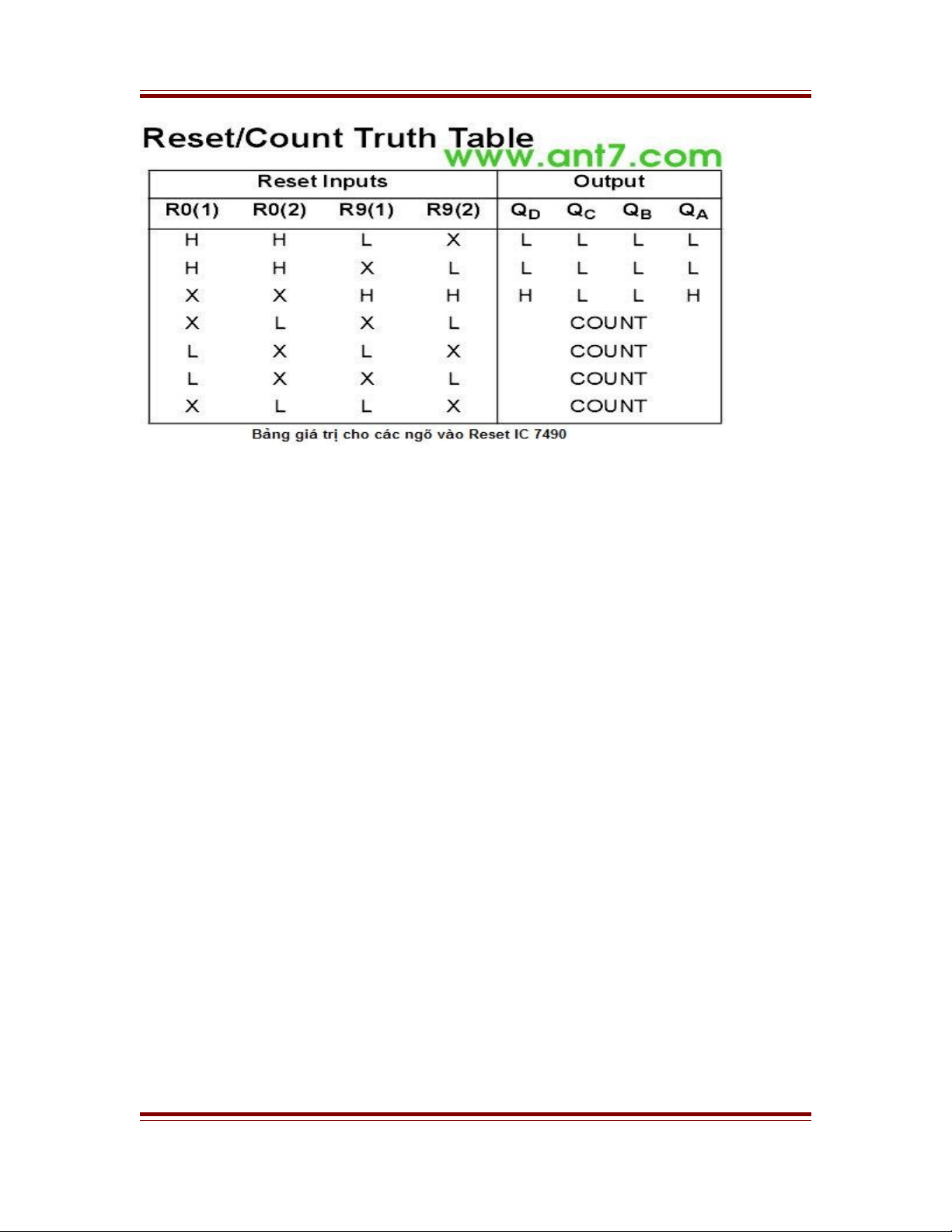 Bang gia tri cua IC 7490 theo cac ngo vao Reset nh sau: ! " ! $ # ư
