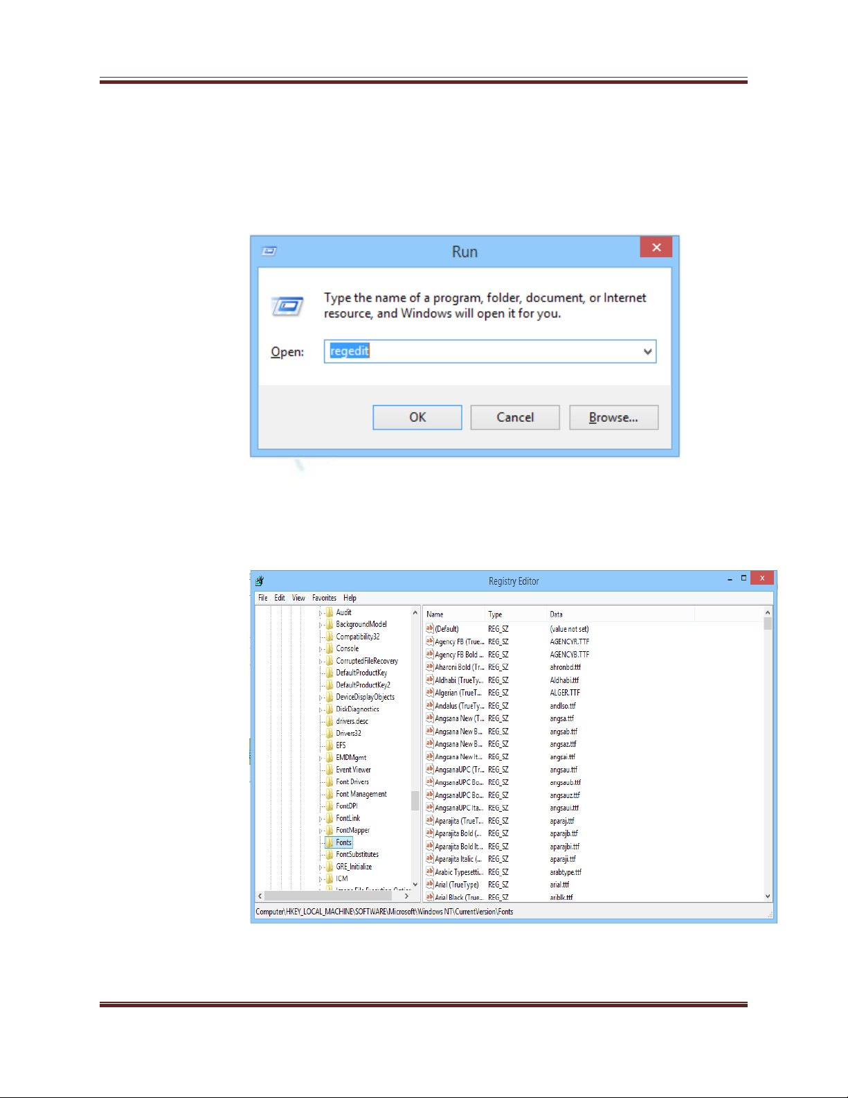 Microsoft\Windows NT\CurrentVersion\Fonts.