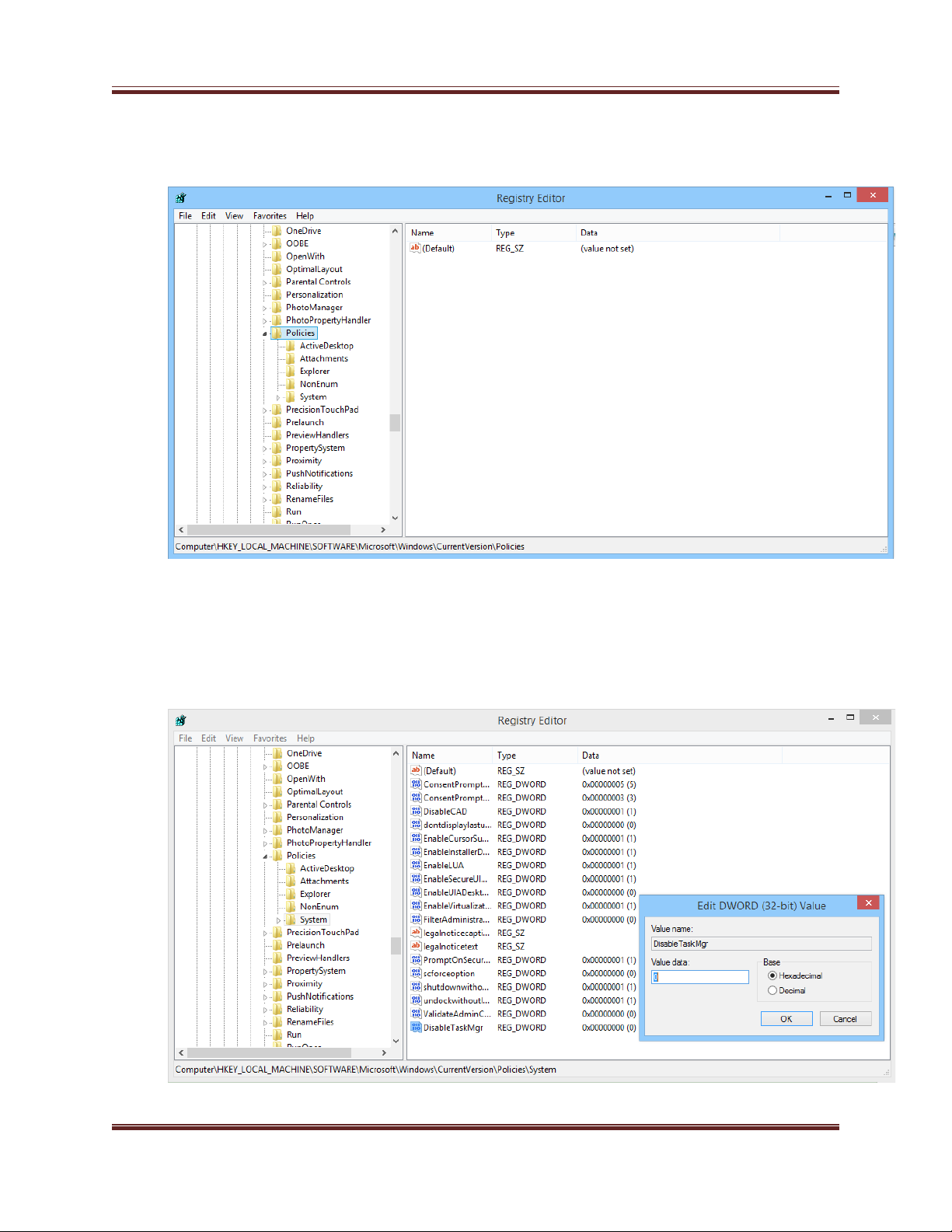 không t o m i key System r i t o thêm khóa DisableTaskMgrạ ớ ồ ạ
