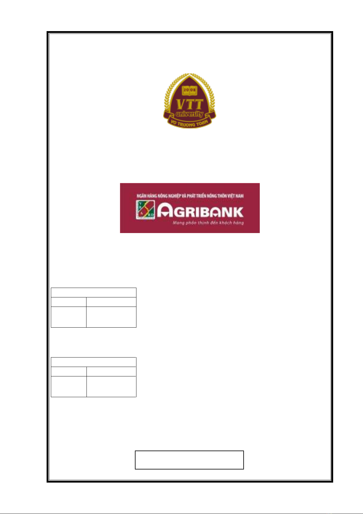 Thực tập tại: Ngân Hàng Nông Nghiệp và Phát Triển Nông Thôn chi nhánh huyện
