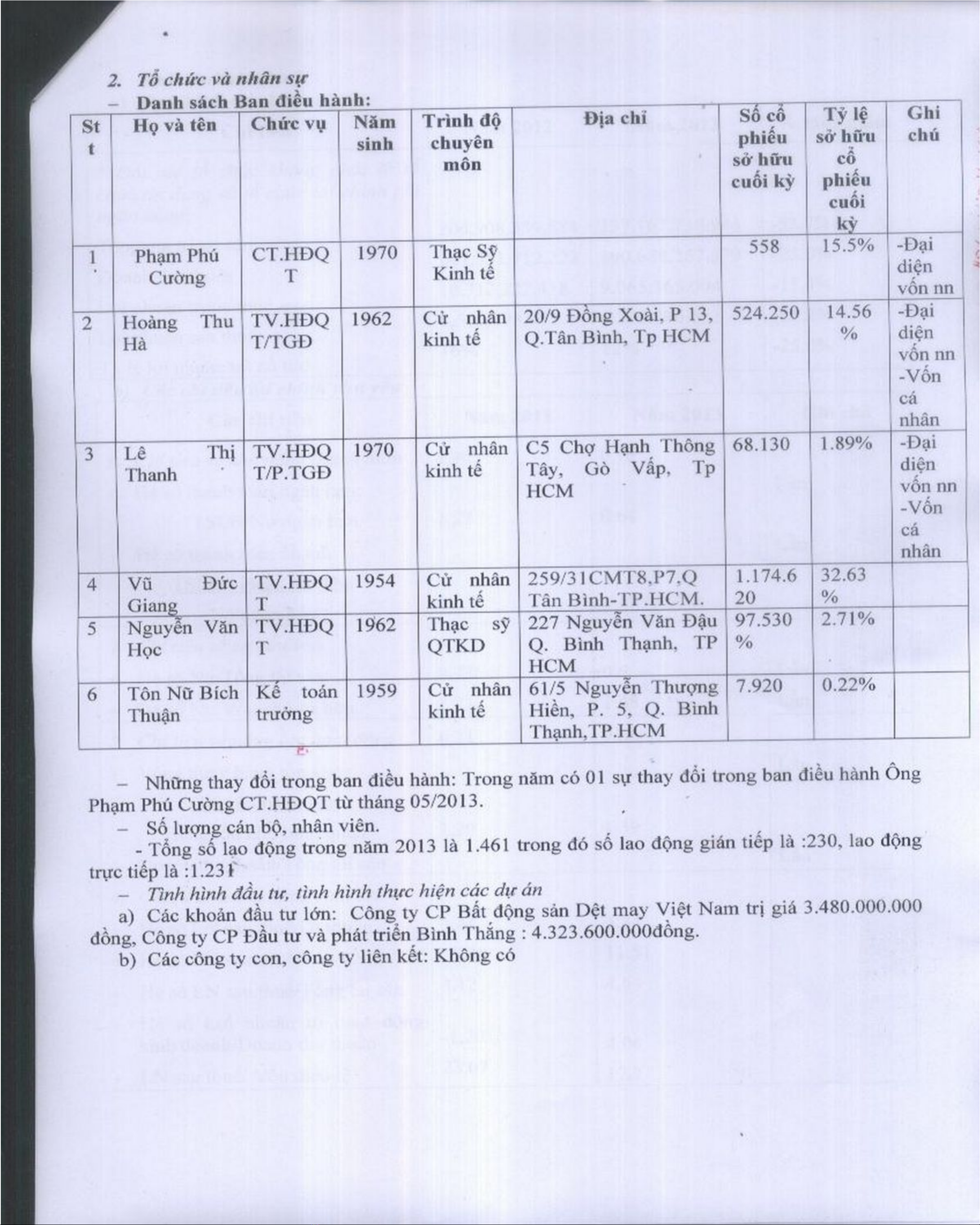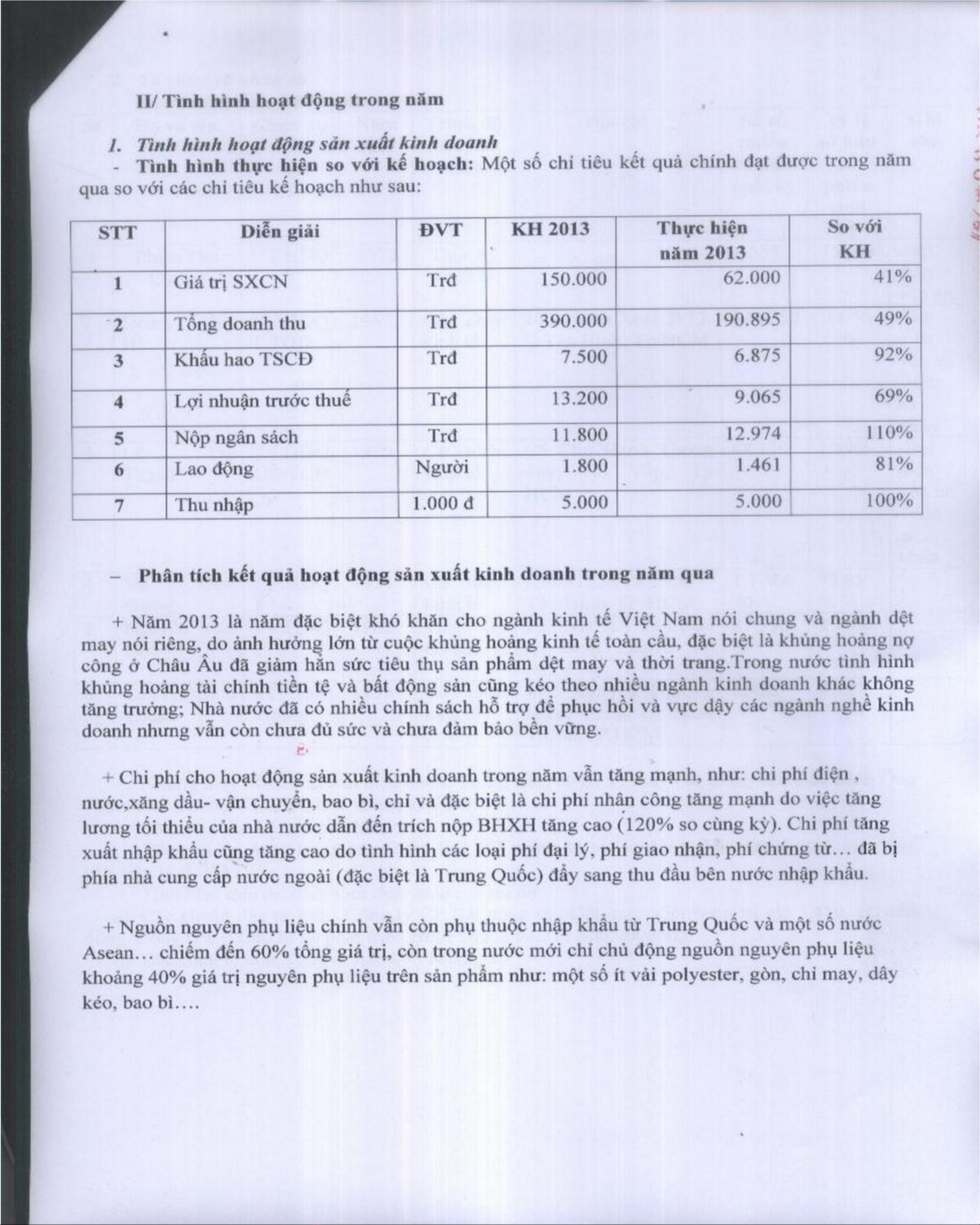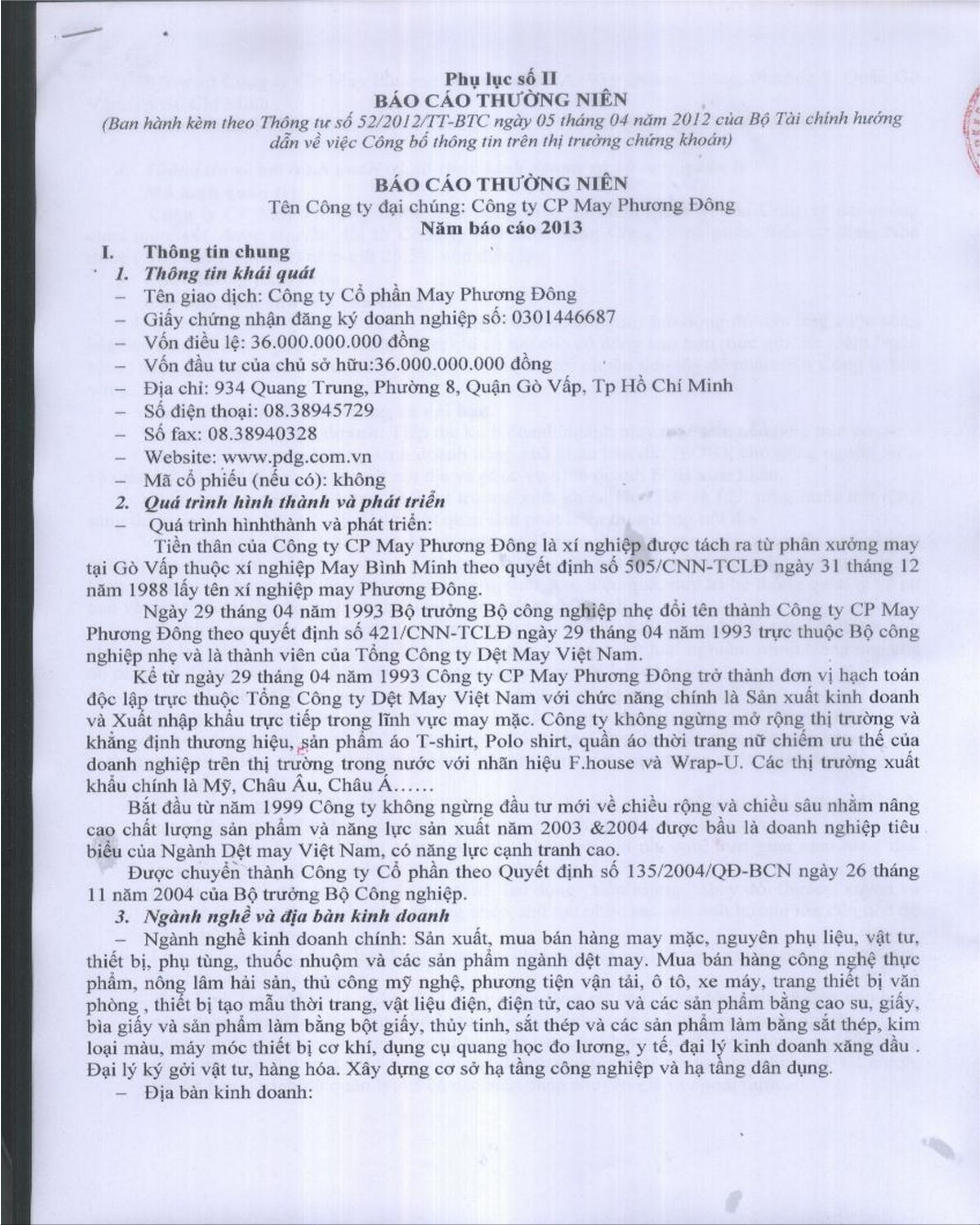 Báo cáo thường niên năm 2013 Công ty Cổ phần May Phương Đông