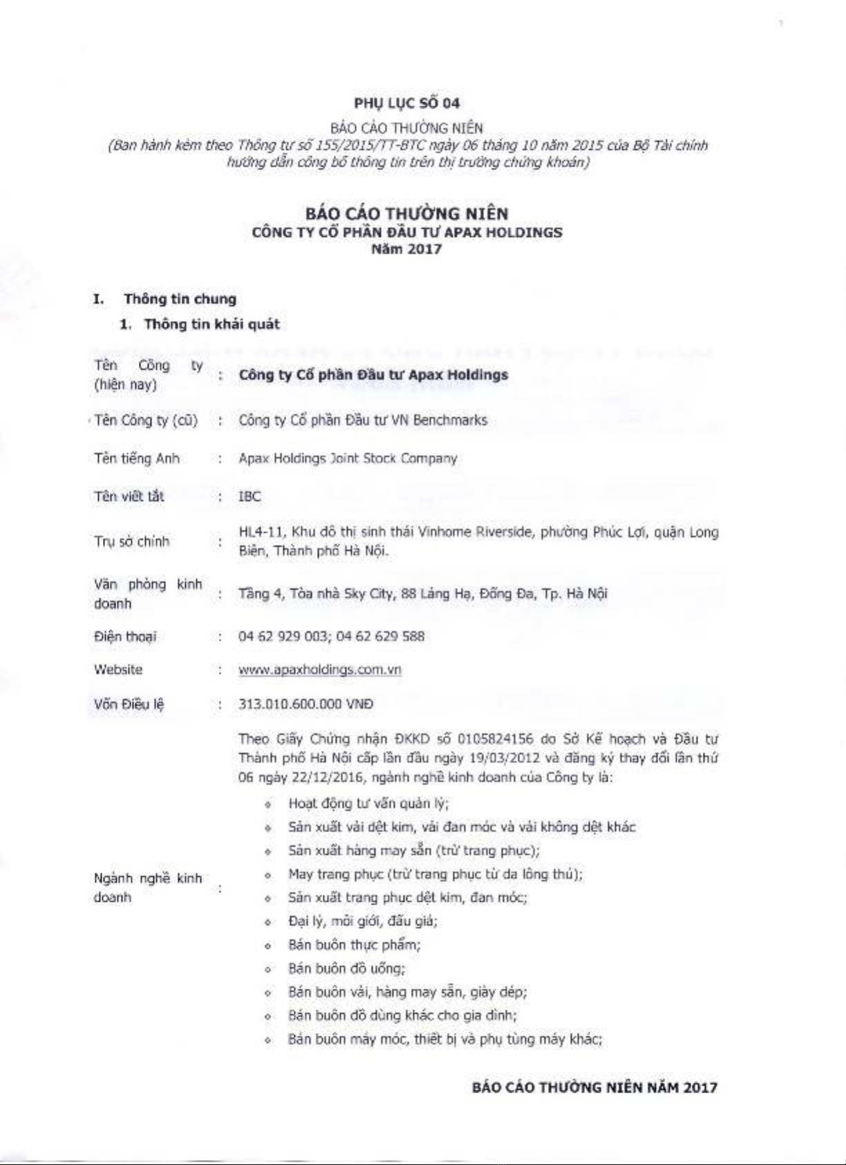 Báo cáo thường niên 2017 - Công ty Cổ phần đầu tư Apax Holdings