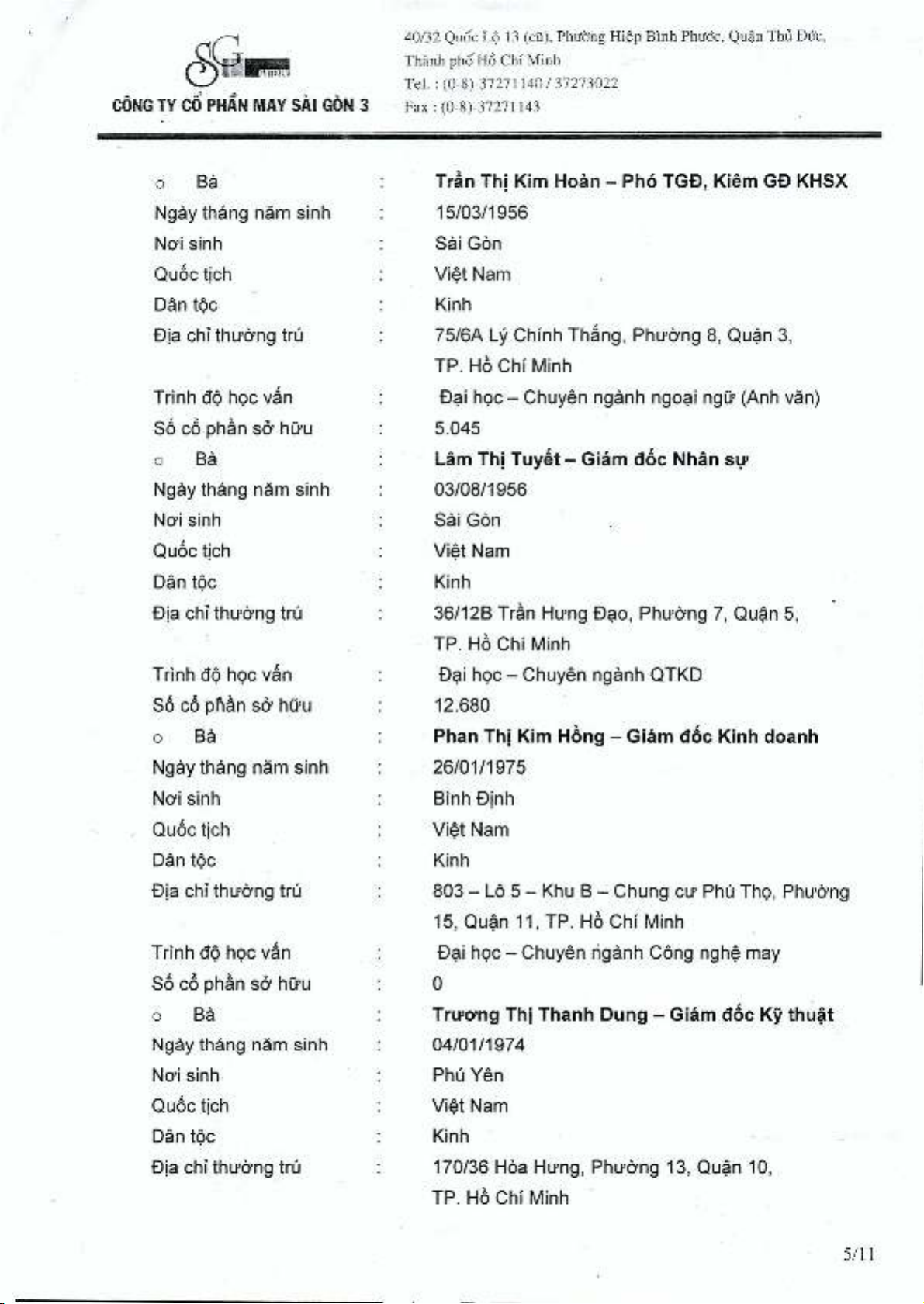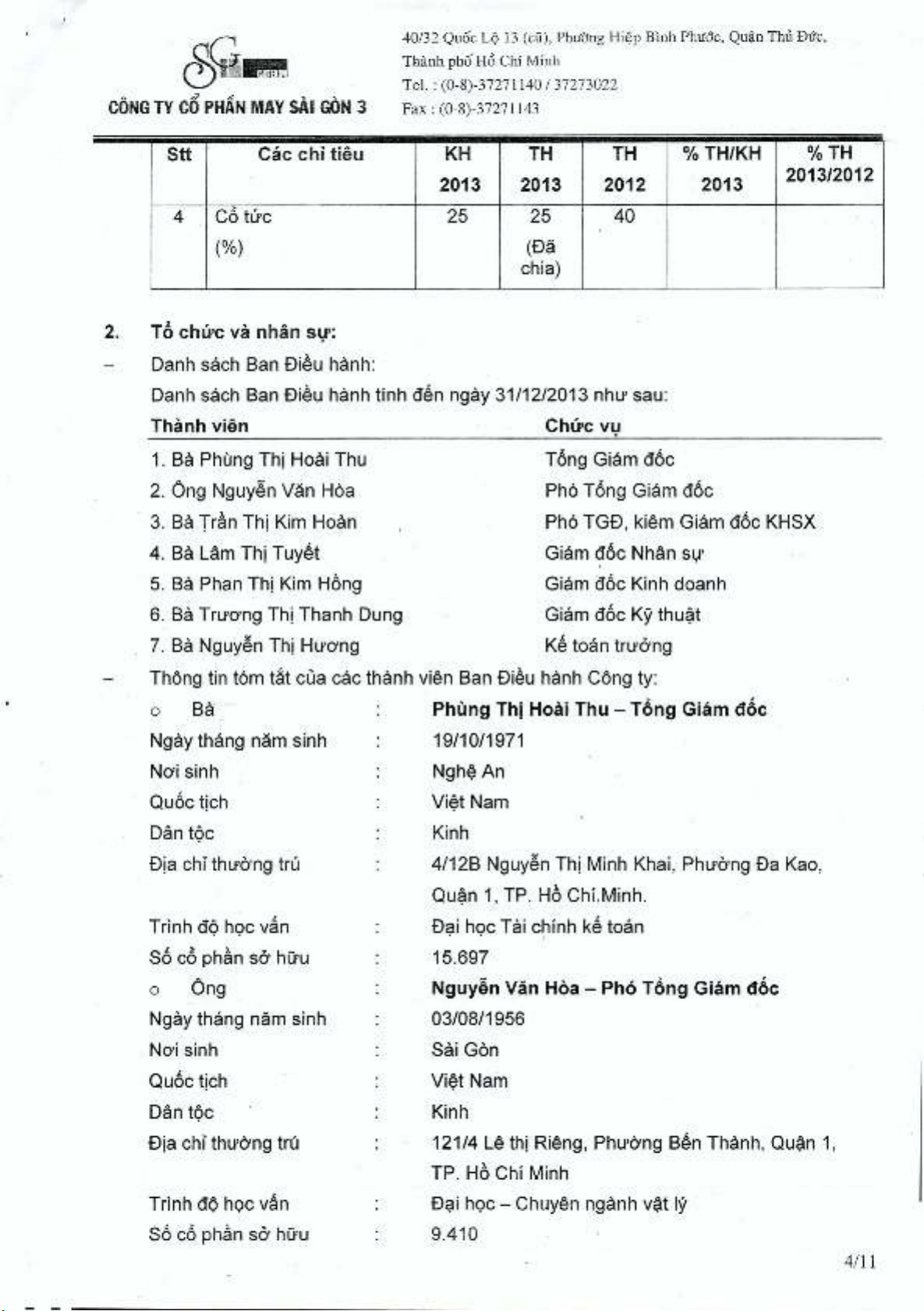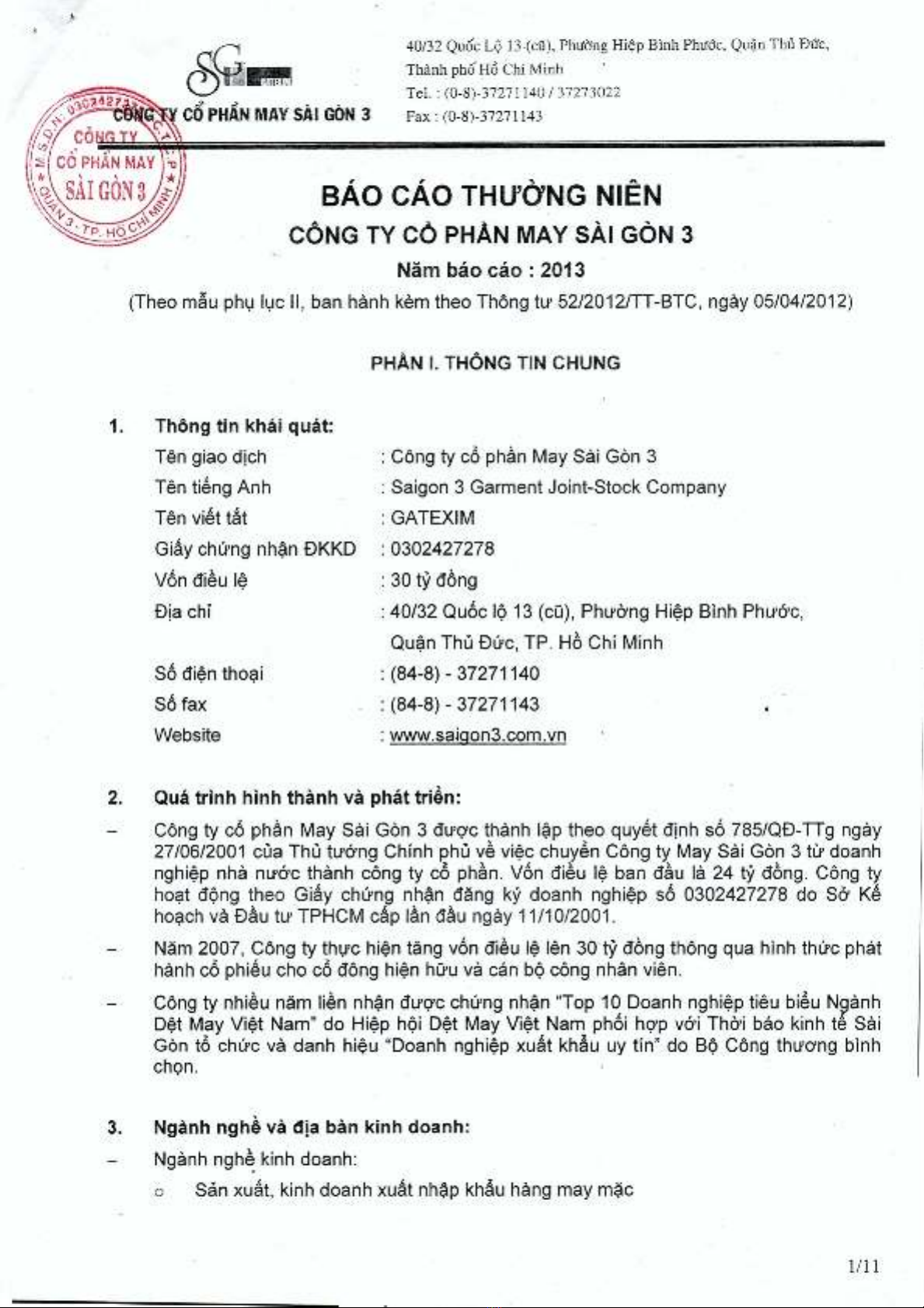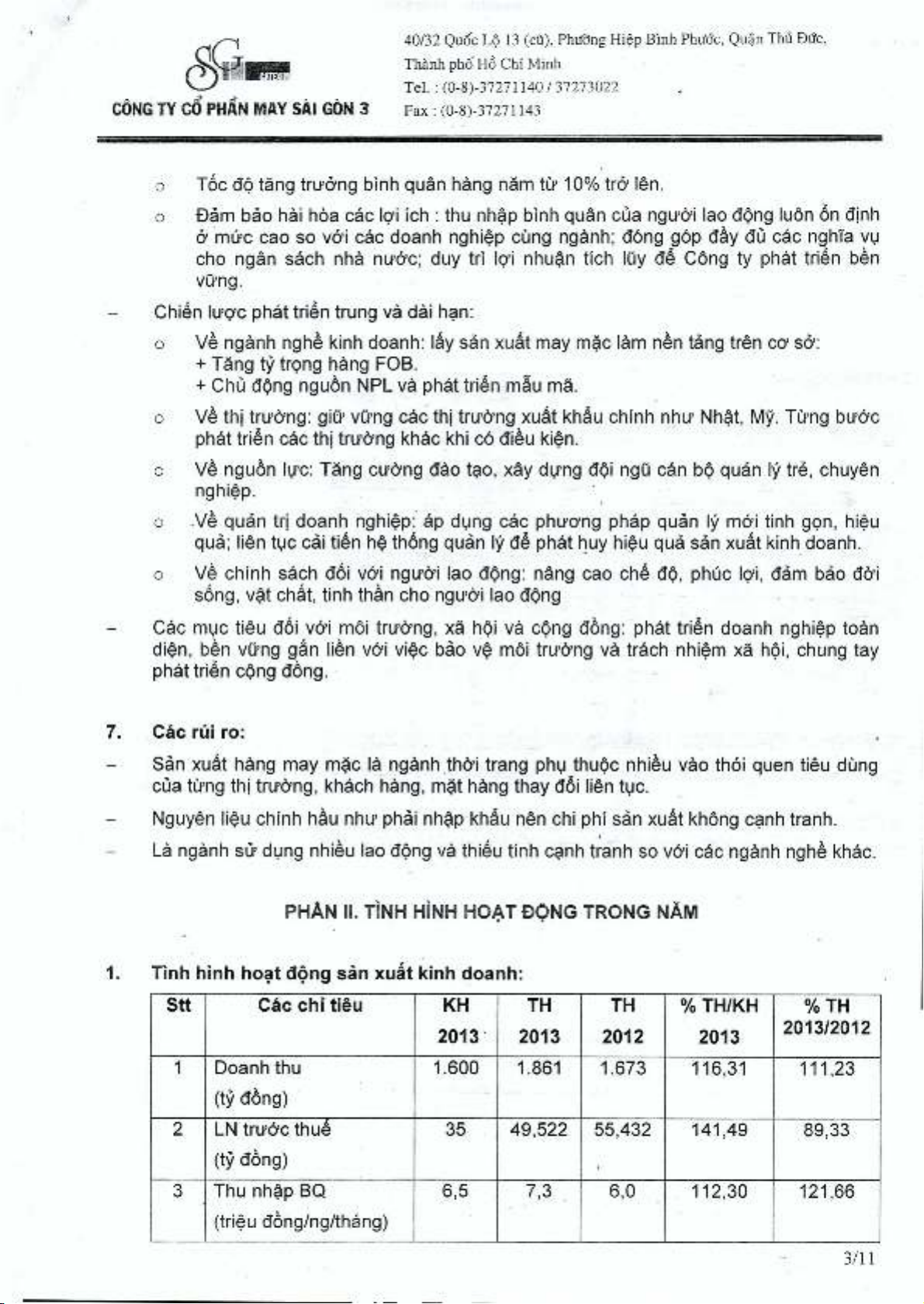 Báo cáo thường niên Công ty Cổ phần May Sài Gòn 3 năm 2013