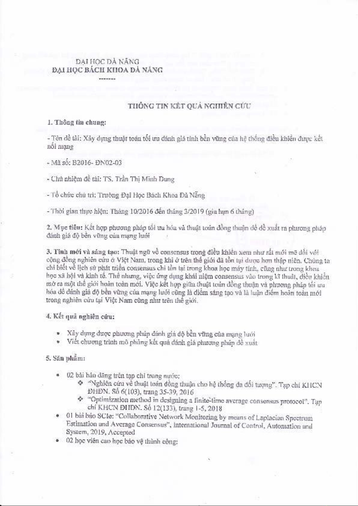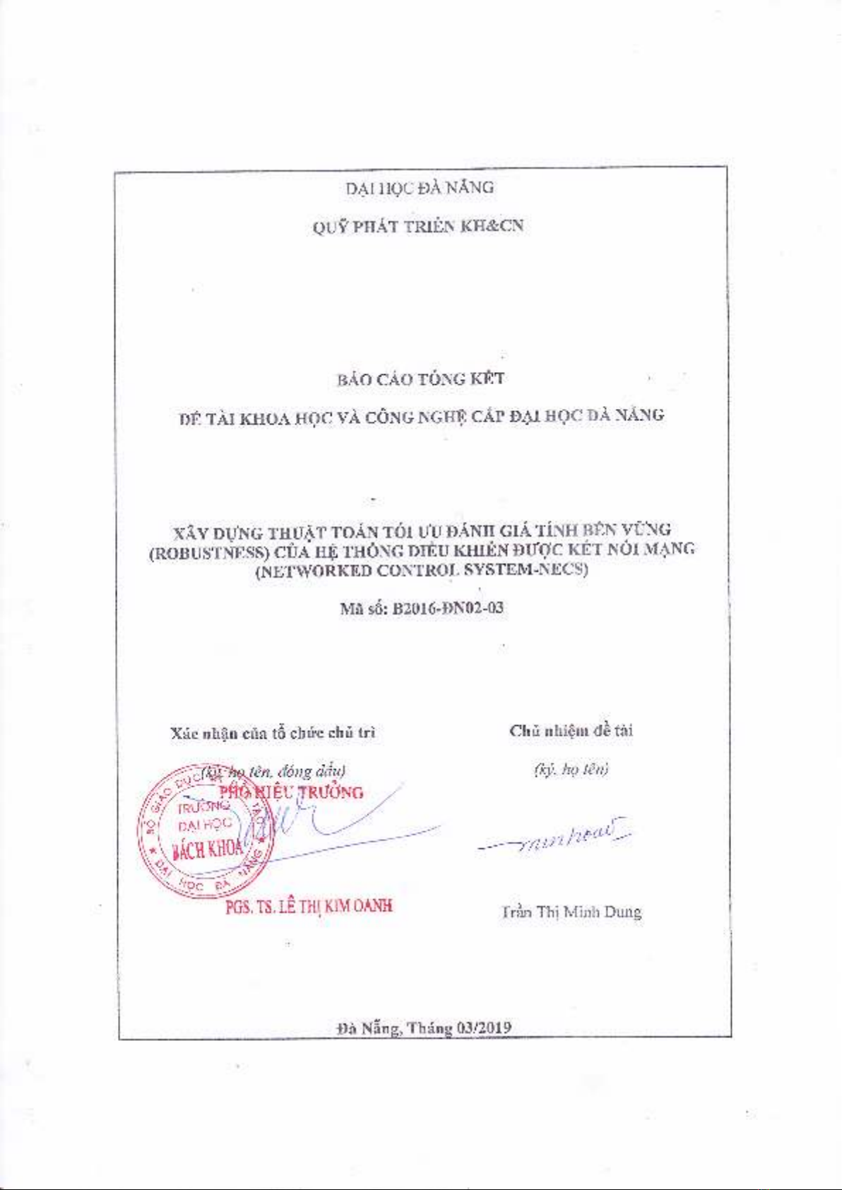 ĐỀ TÀI KHOA HỌC VÀ CÔNG NGHỆ CẤP ĐẠI HỌC ĐÀ NẴNG