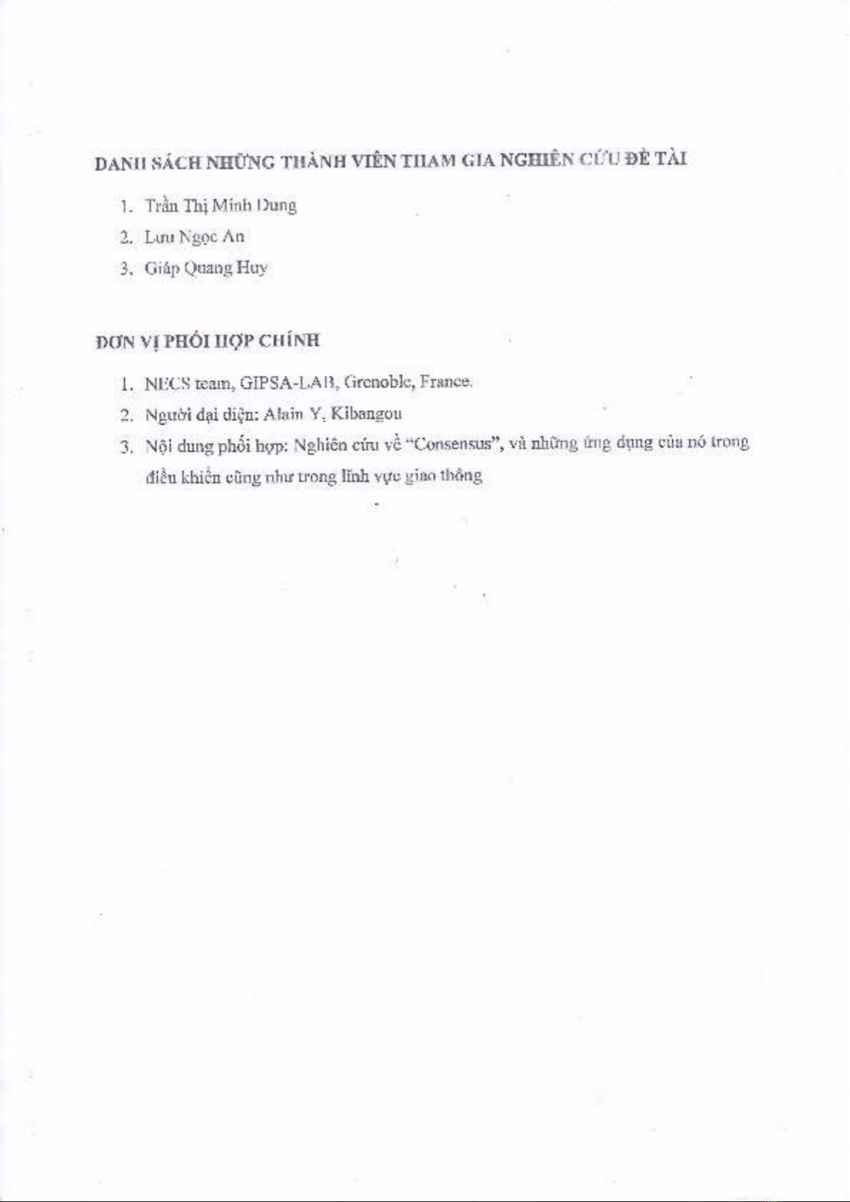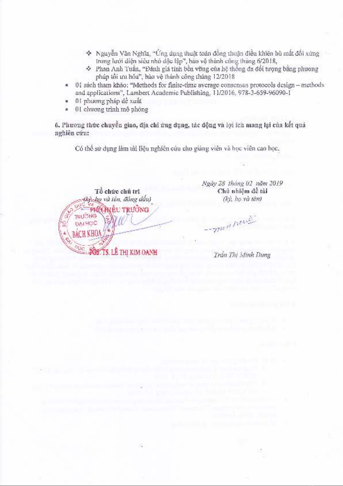 Chủ nhiệm đề tài: TS. TRẦN THỊ MINH DUNG