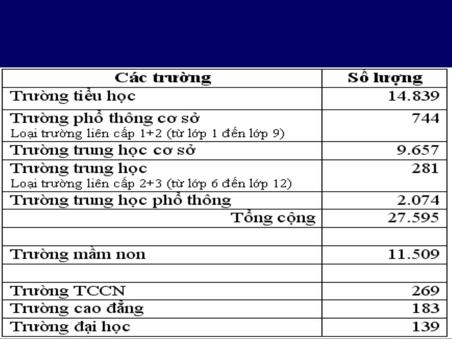 • Số lƣợng trƣờng học rất lớn.
