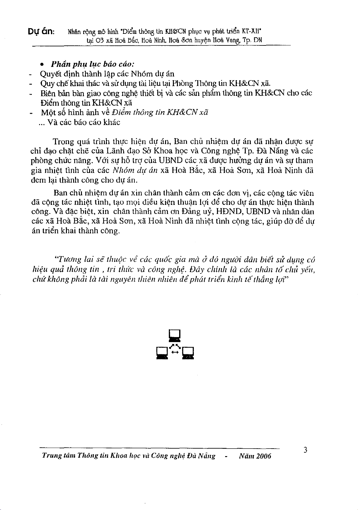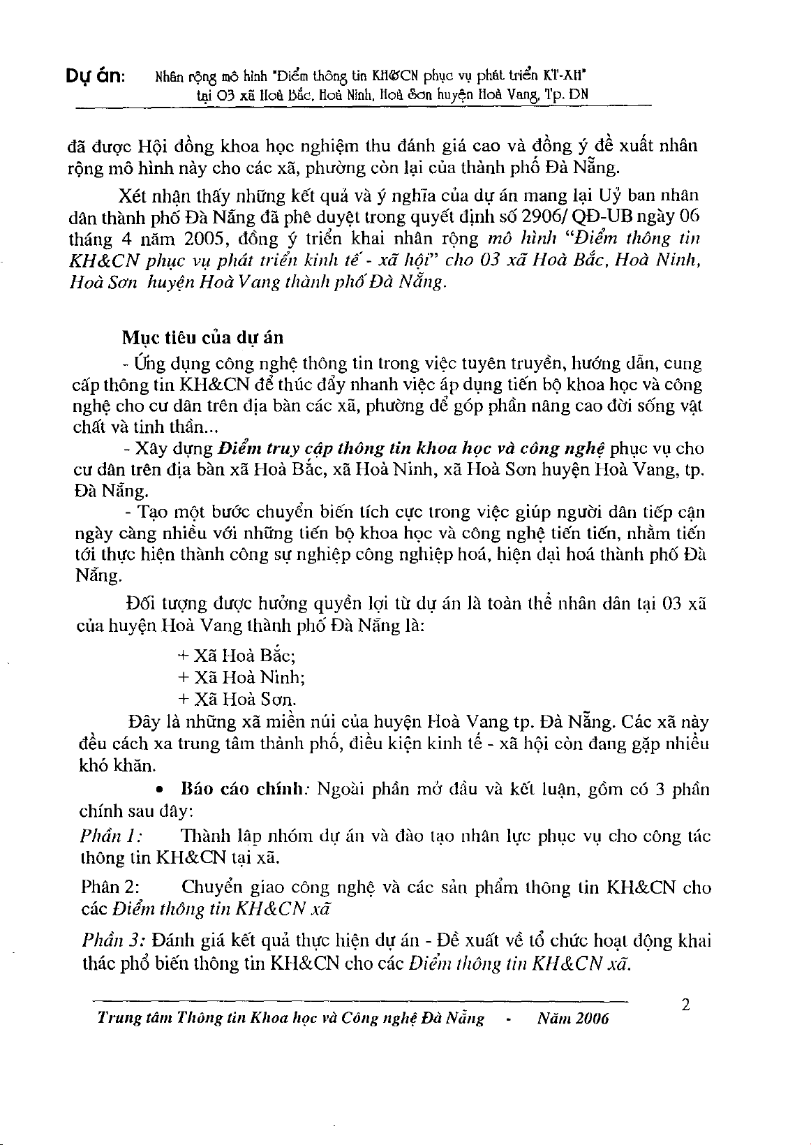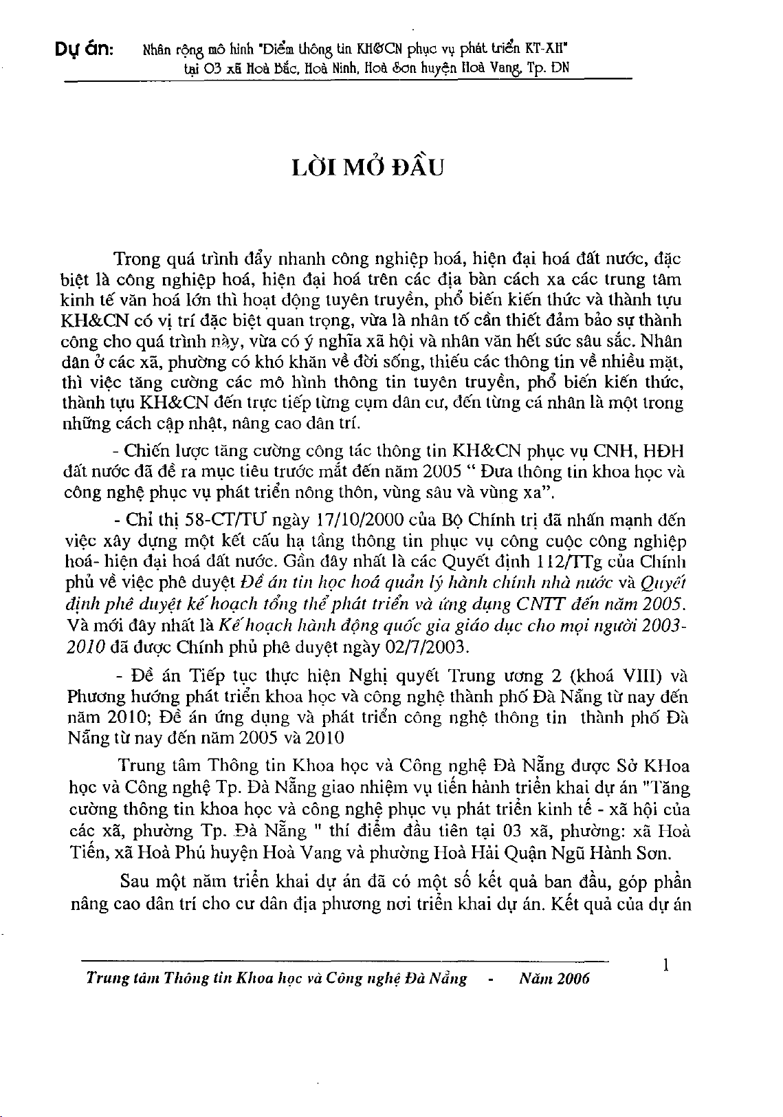 Dự án tiến hành ứng dụng công nghệ thông tin trong việc tuyên truyền, hướng dẫn, cung cấp thông tin khoa học công nghệ để thúc đẩy nhanh việc áp dụng tiến bộ khoa học công nghệ cho cư dân trên địa bàn các xã, phường để góp phần nâng cao đời sống vật chất, tinh thần của người dân; xây dựng điểm truy cập thông tin khoa học và công nghệ,... Mời các bạn cùng tham khảo nội dung chi tiết.