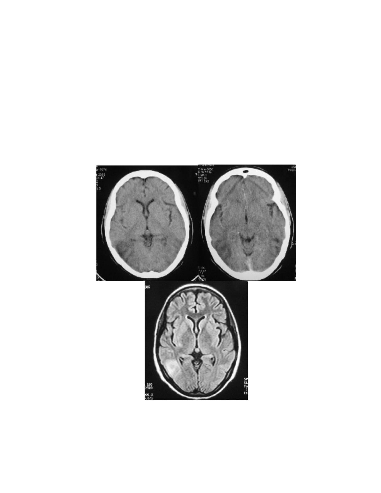 - CT scan naõo: Giaûm ñaäm ñoä khoâng ñoàng nhaát vuøng ñính chaåm hai beân, beân phaûi roõ