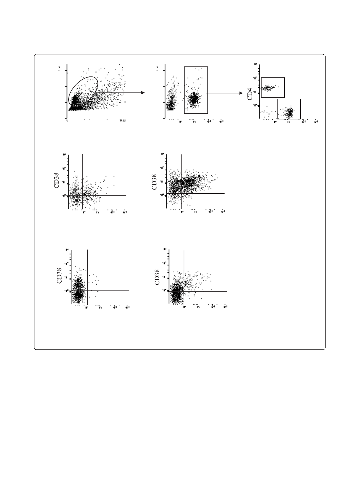 strategy. The percentage of cells positive for both HLA-DR and CD38 staining is given in the upper quadrant of each dot plot.