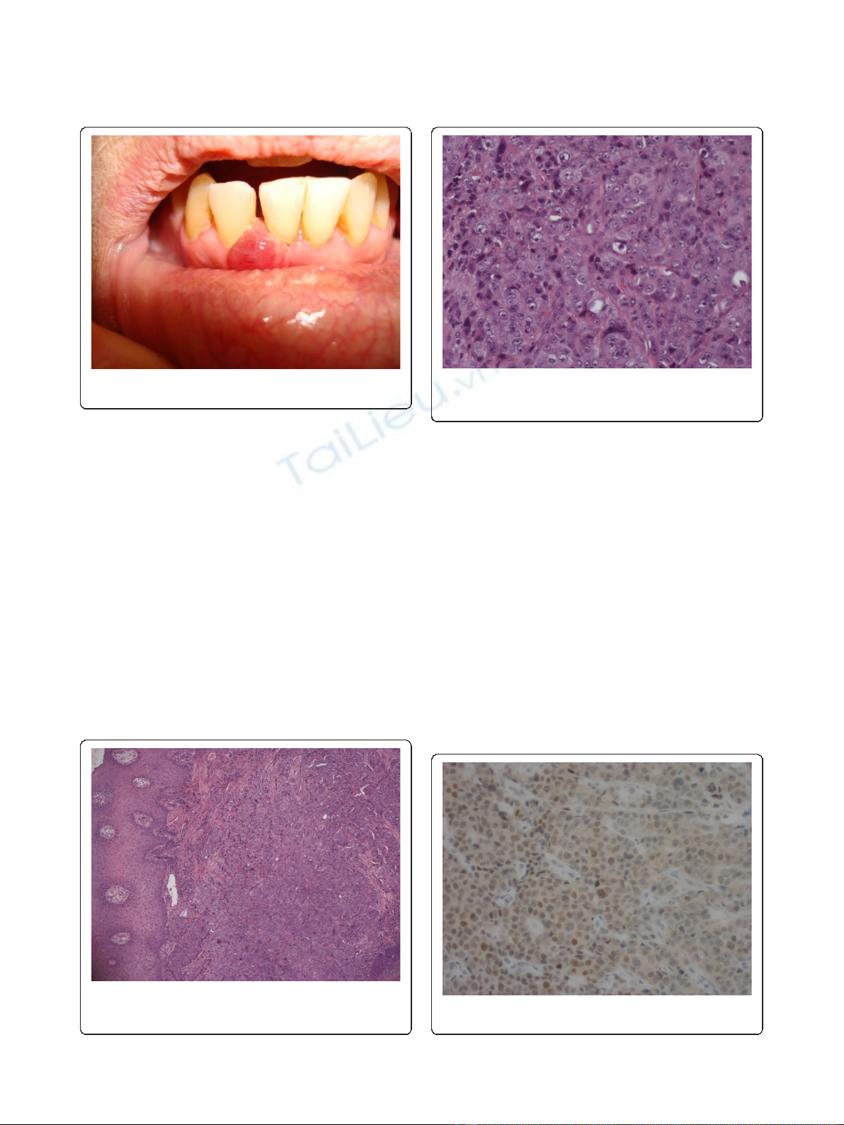 growing, painless gingival swelling. Histopathologic examination of the excisional biopsy showed metastasis of