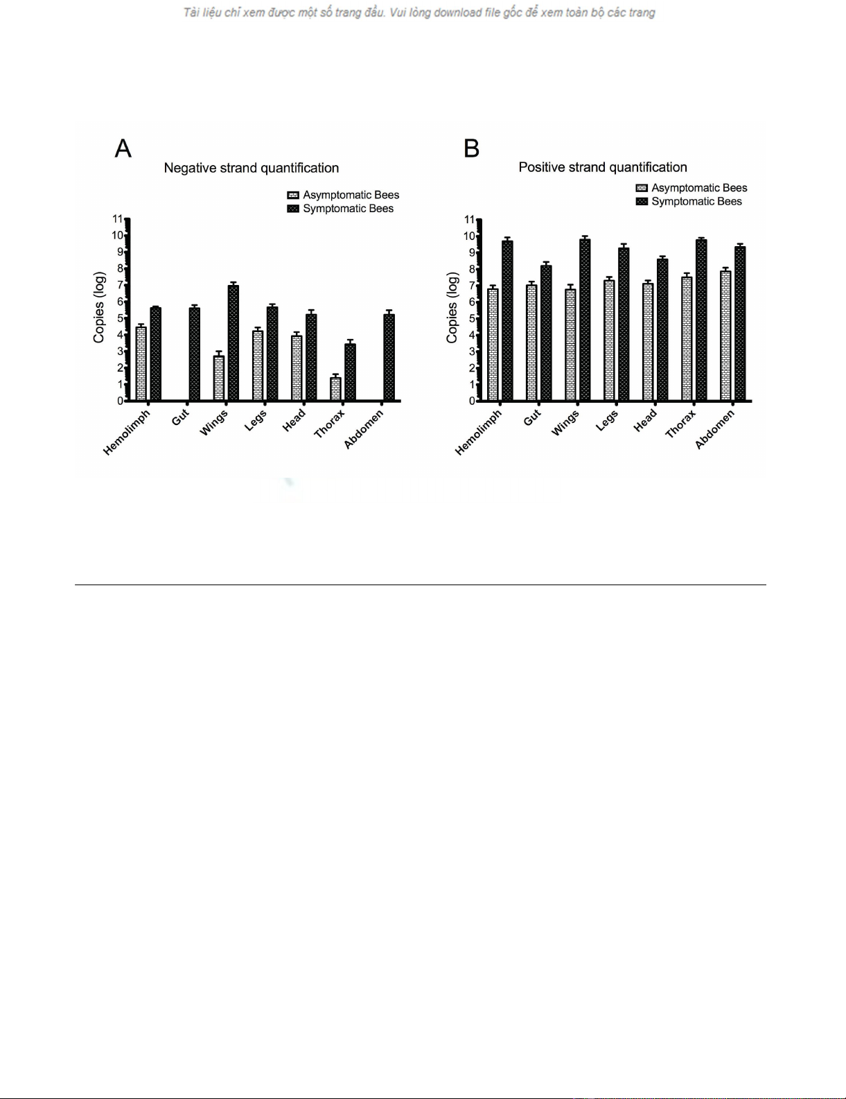 tomatic and asymptomatic bees. The hemolymph, gut, wings, legs, head, thorax and abdomen were individually dissected
