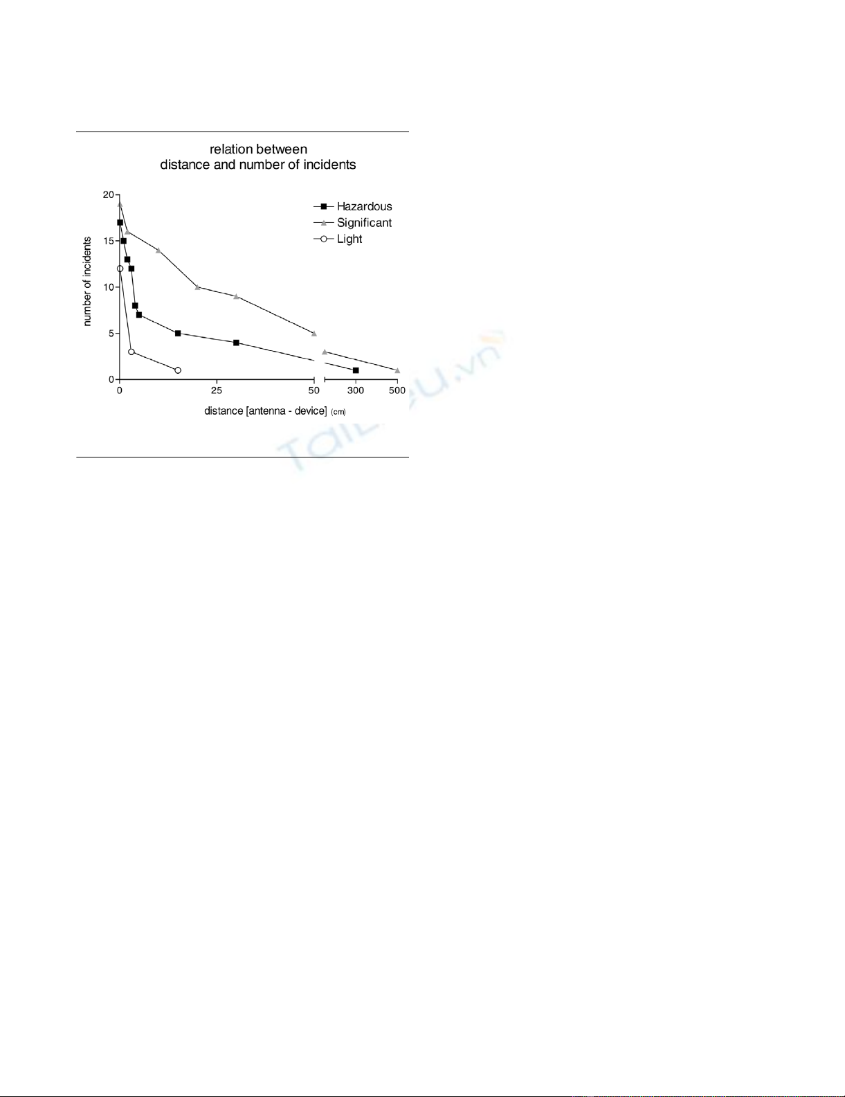 between antenna and medical device for EMI incidents was 3