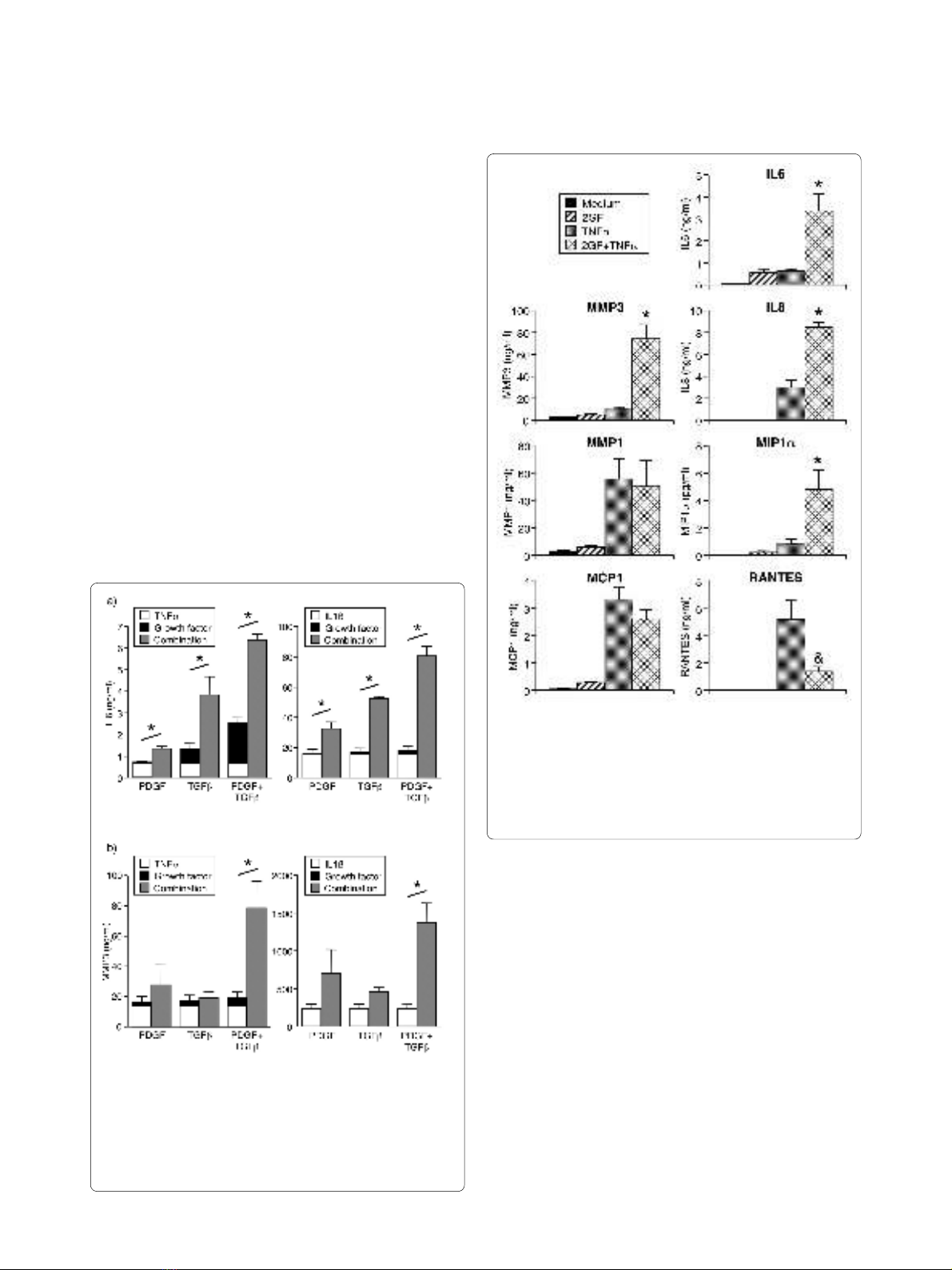 Results: In combination, TGF-β and PDGF (2GF) synergistically augmented TNFα- or IL1β-induced matrix