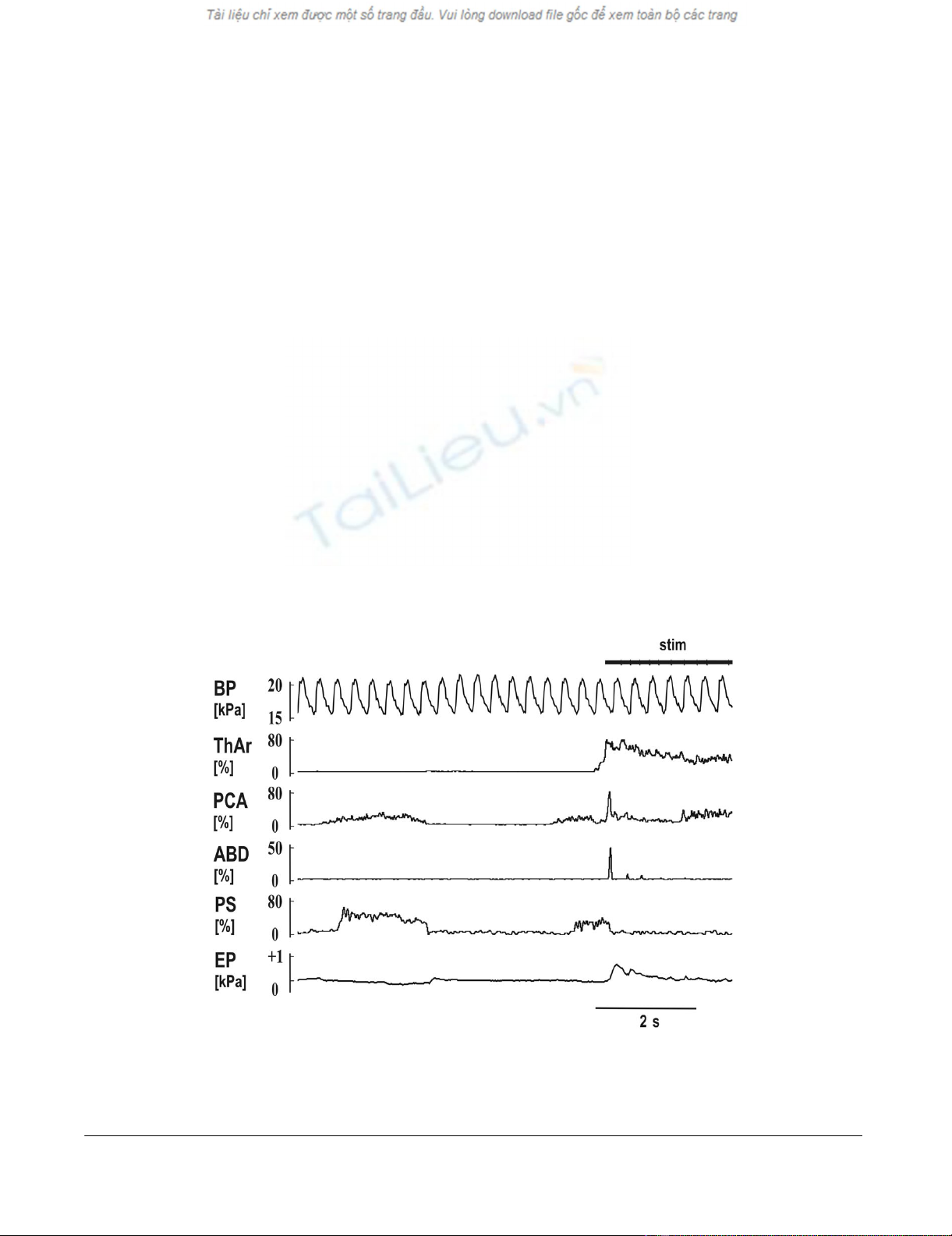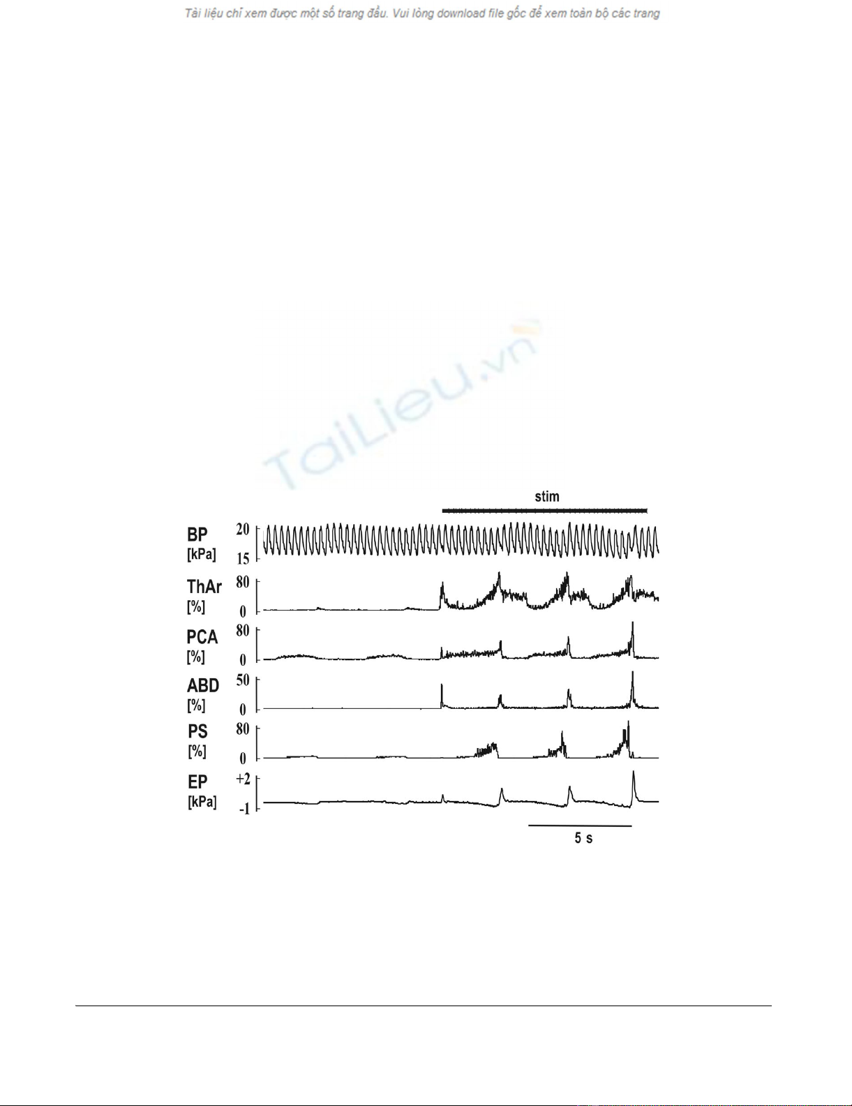 breathing. The stimulation immediately terminated an inspiration (rapid suppression of PCA and PS) and induced the ERt