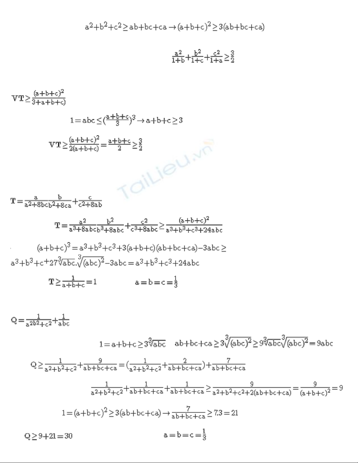 Ví dụ 4: Cho các số dương a,b,c thoả mãn abc = 1. CMR