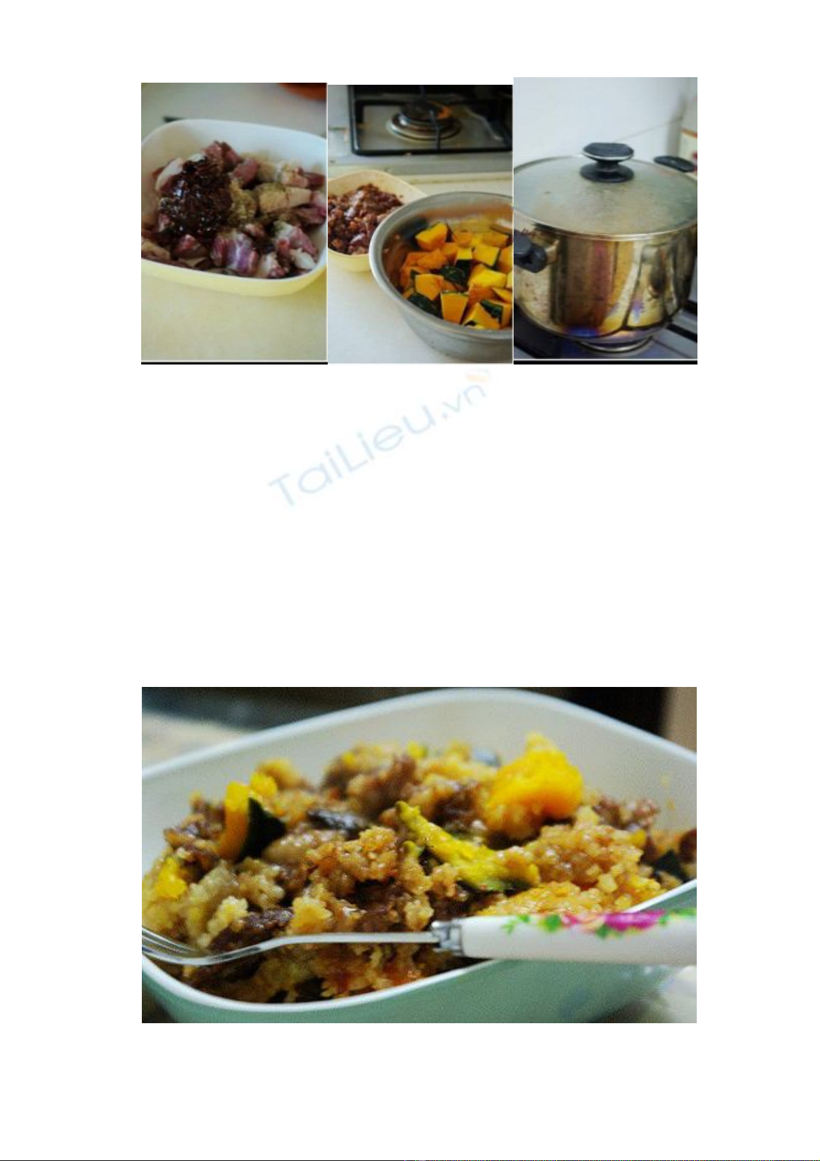 Cho âu thịt bò bí đỏ vào nồi hấp trong 30 phút
