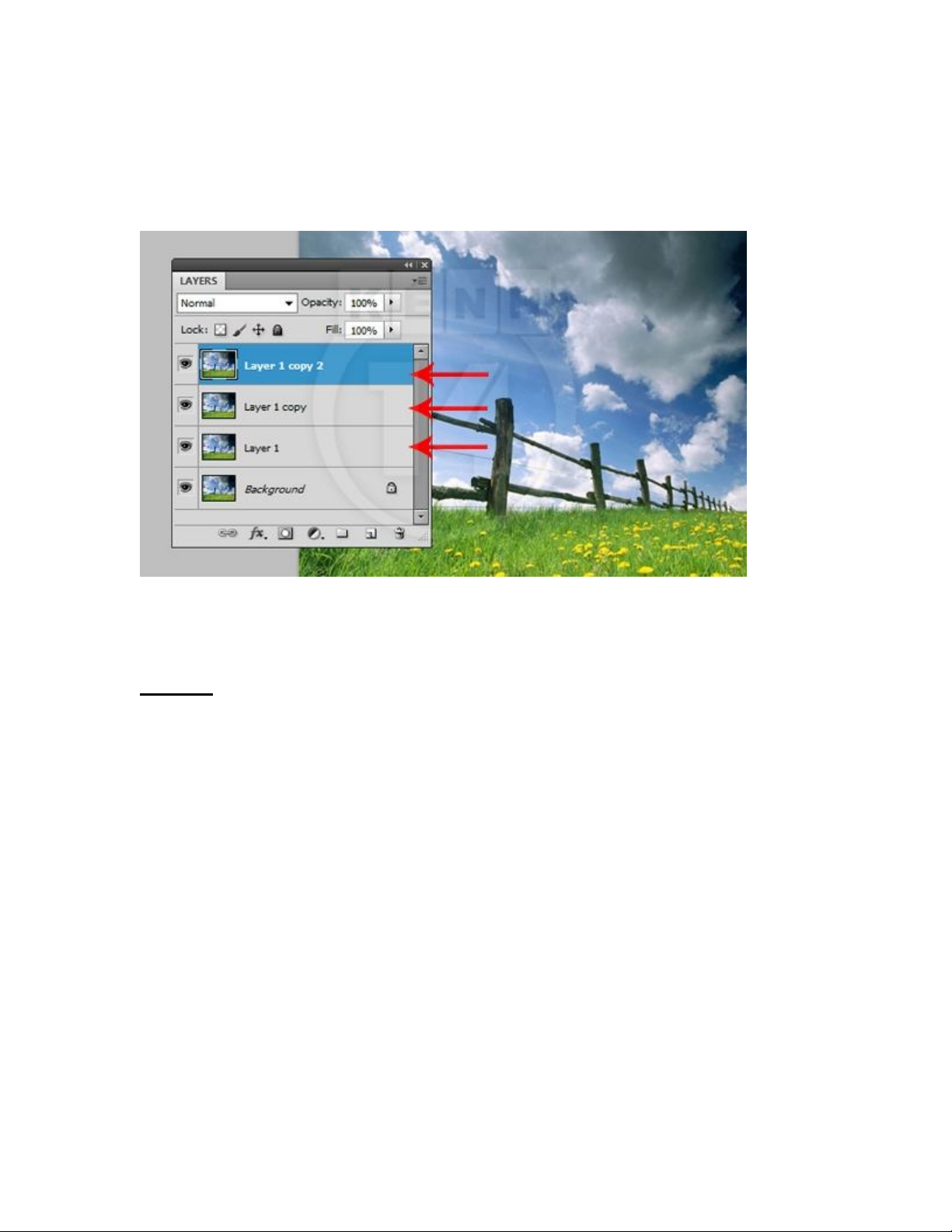Nhân đôi layer ban đầu thêm 3 lần bằng tổ hợp phím Ctrl + J.