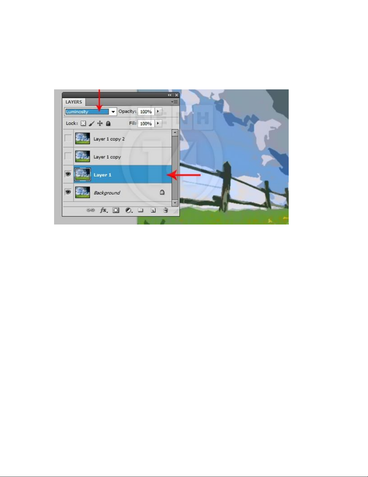 Chuyển chế độ hòa trộn của Layer 1 thành Luminosity.