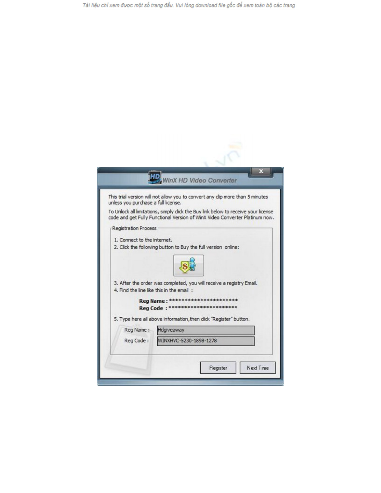 Bản dùng thử của WinX HD Video Converter chỉ cho