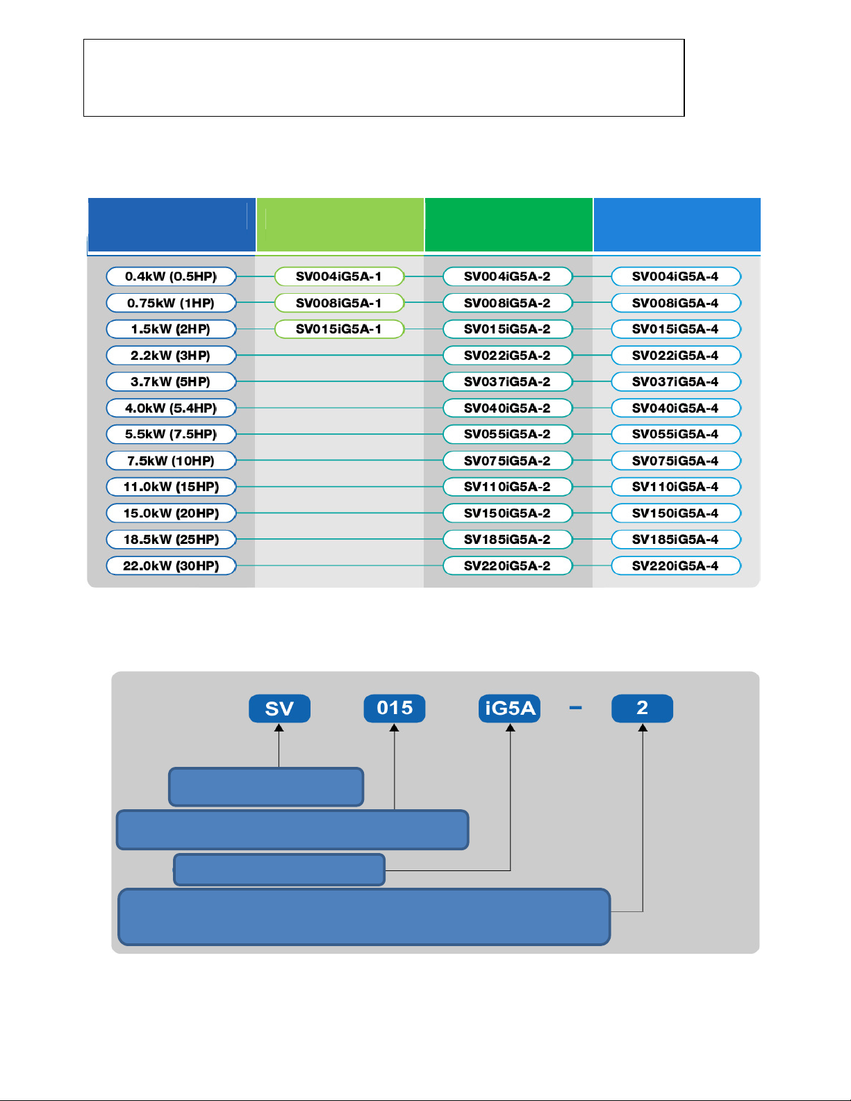 (1: 1pha 200~230V, 2: 3 pha 200~230V, 4: 3 pha 380~480V)