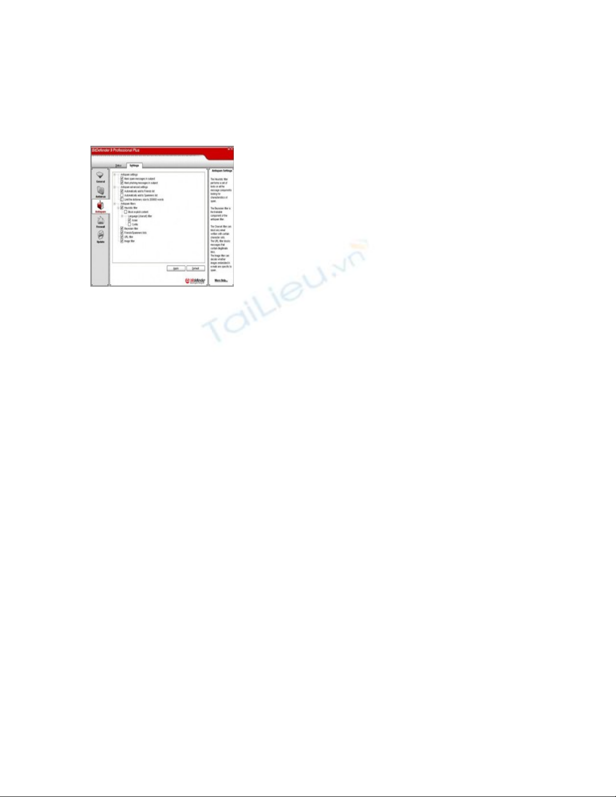 - Chống spyware theo chế độ thời gian thực:BitDefender giám sát hàng loạt những hotspot(điểm “nóng”) trong hệ thống
