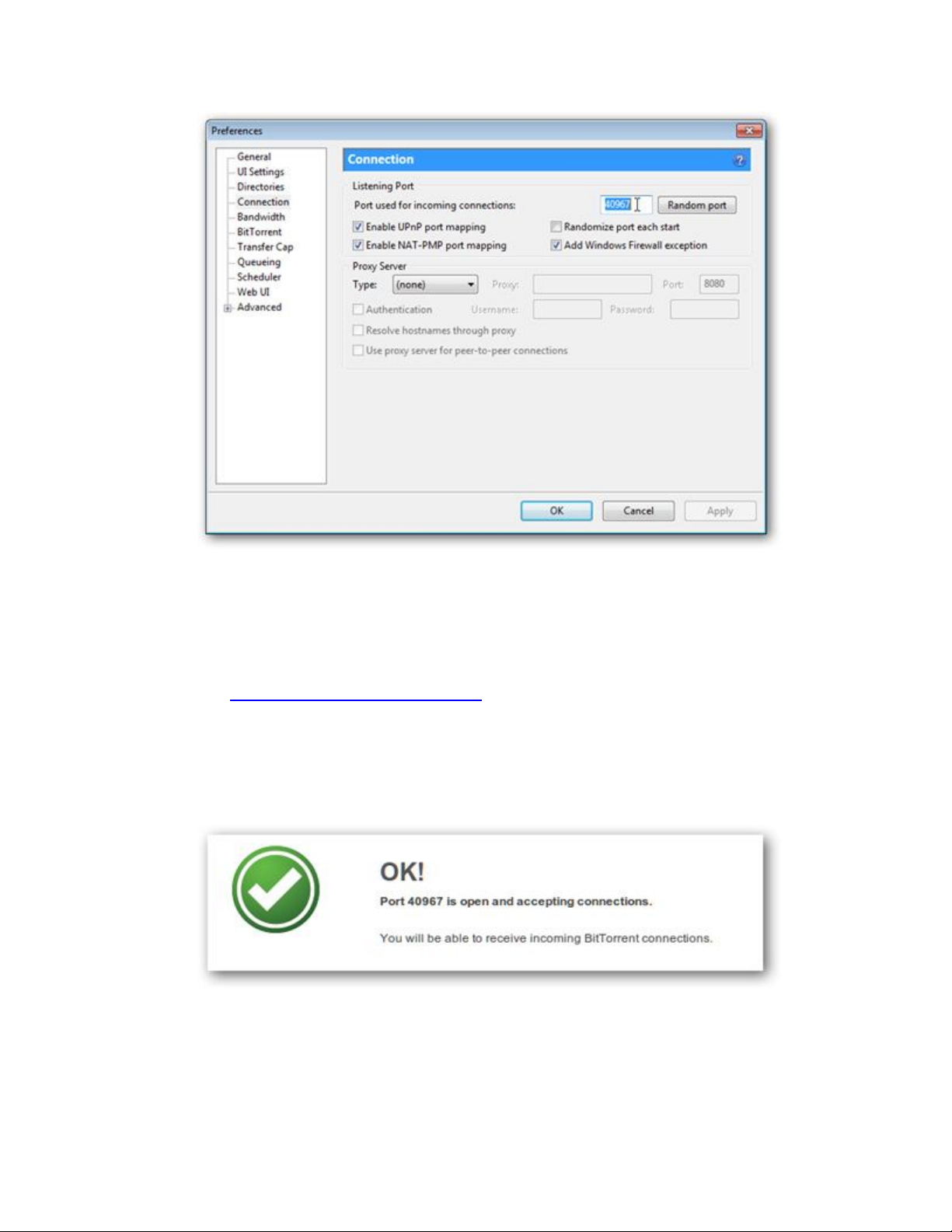uTorrent và chọn Options > Preferences > Connections: