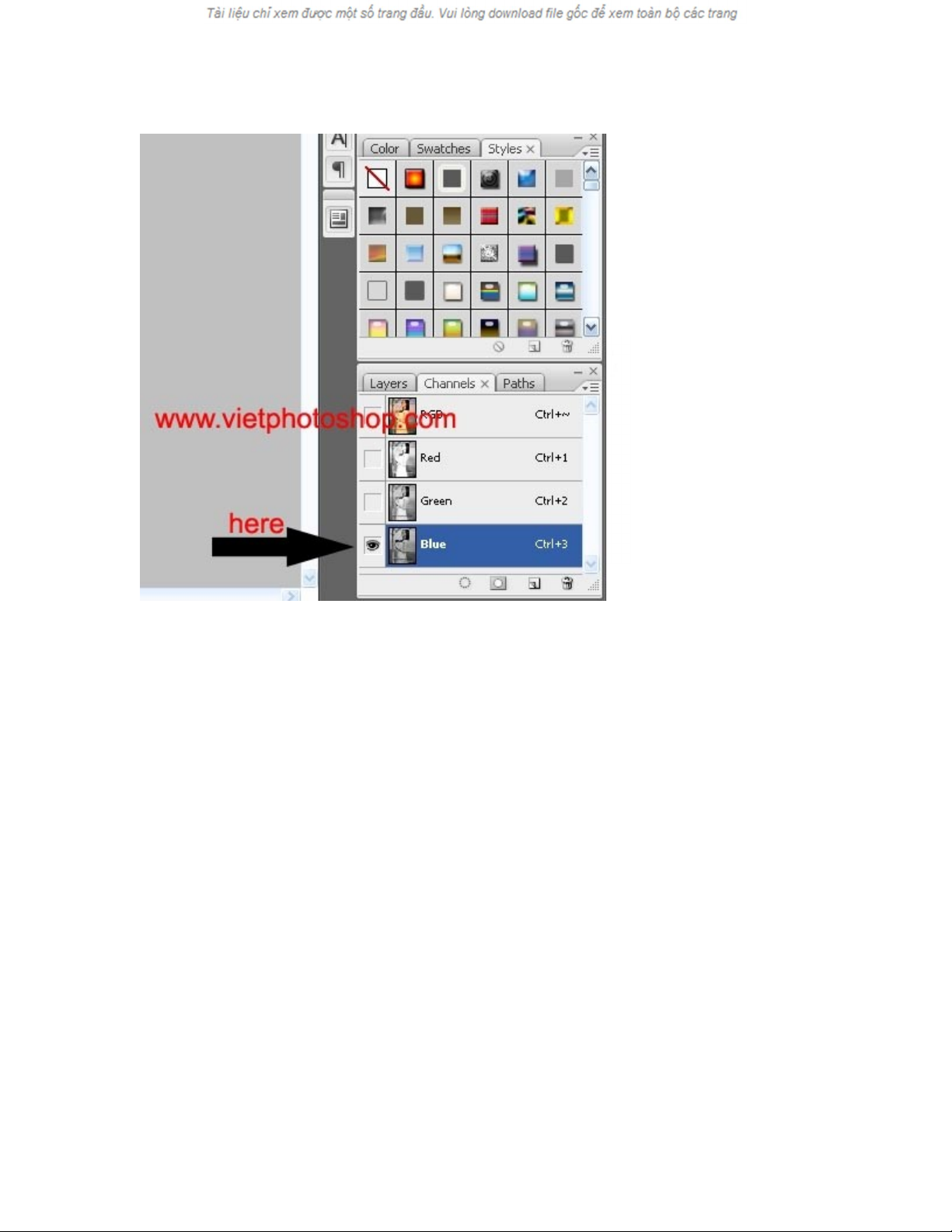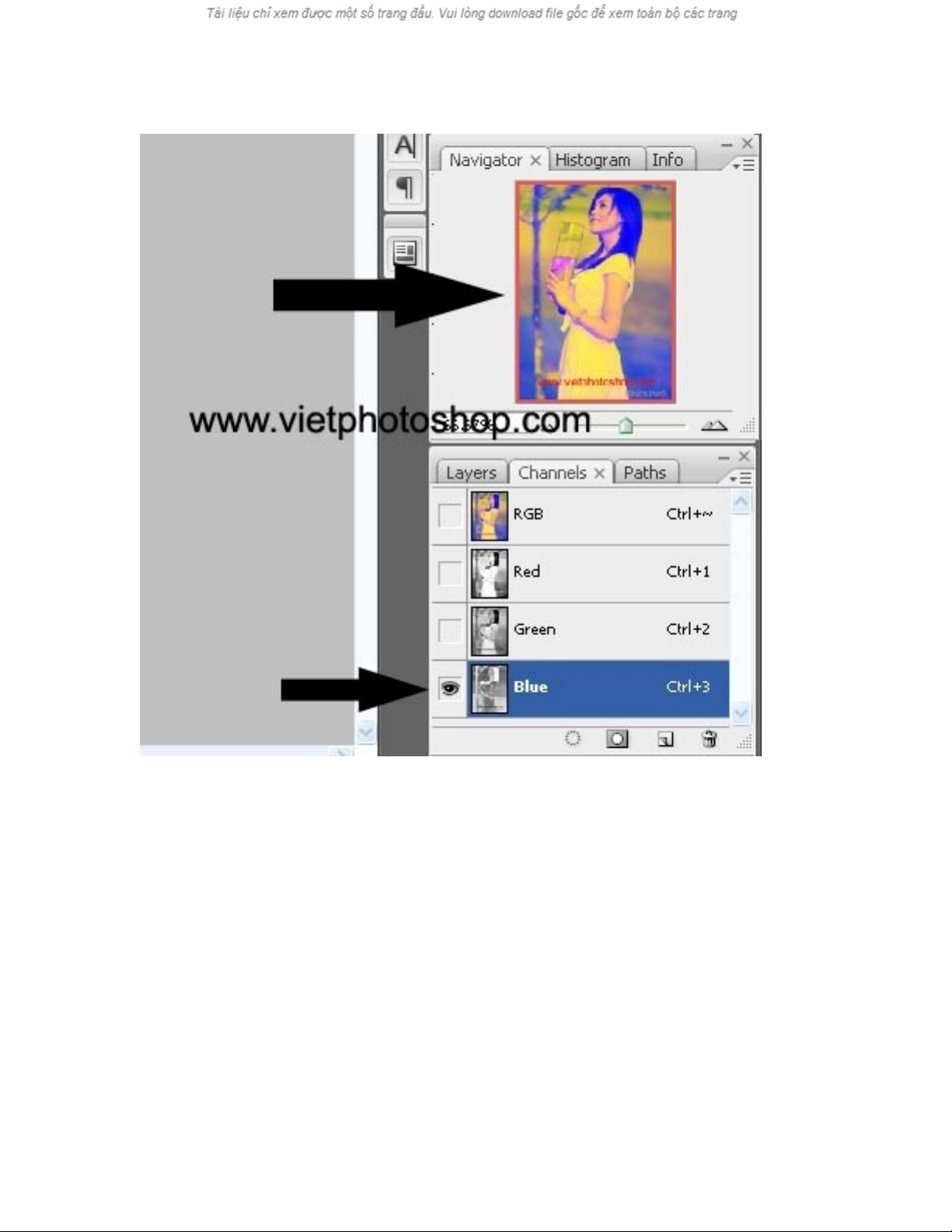 Bước 2 : Vào tab Channel của Layer 1 (layer background copy), chọn kênh Blue