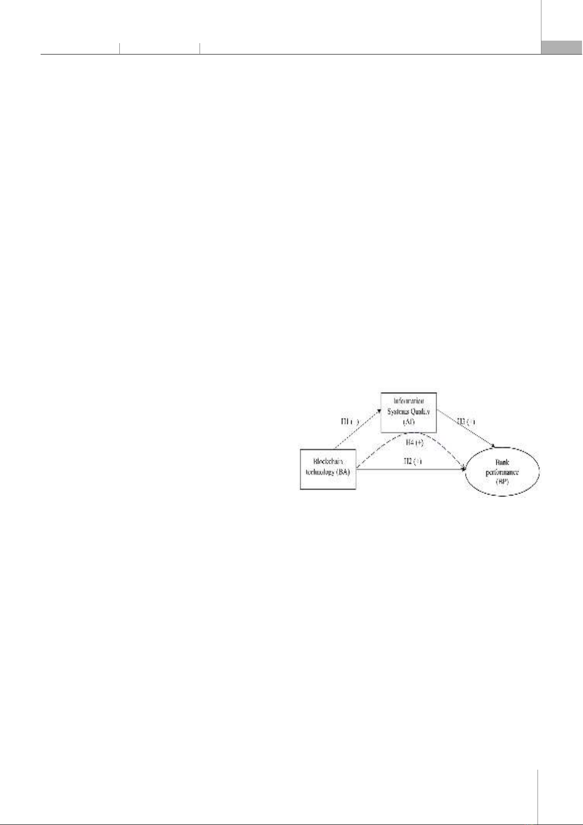 the accuracy, reliability, and comprehension of nancial data [5]. Blockchain's role in reducing information asymmetry, improving stakeholder collaboration and transforming enterprise resource planning systems underscores its potential to reshape the way the accounting industry works. 2.2. The function of blockchain applications in banking sector accounting information systems In recent years, the banking industry has witnessed signicant transformations under the impact of emerging technologies such as cloud computing, cloud data, articial intelligence, and the Internet of Things (IoT) [6]. In particular, blockchain has emerged as a transformative force, strongly impacting the business model of the banking industry [7]. The most prominent feature of blockchain technology is that it is structured as a ledger, which is orderly, decentralized, and immutable, facilitating the recording of transactions within the network. Transactions are securely recorded in immutable blocks, including all relevant information. This decentralized approach is in contrast to traditional methods of recording transactions, which are often centralized, inefficient, and expensive. Blockchain provides an innovative solution that allows for the recording and sharing of valuable transaction information across the network. The integration of blockchain technology into accounting information systems in the banking sector is the focus of recent research because of its distinctive features of security, transparency, and immutability [8]. Blockchain's transformative potential helps accelerate payments and reduce risks associated with nancial reporting fraud [9]. Other outstanding characteristics of Blockchain have been identied such as providing differentiated access, high security, and good fraud prevention. In addition, blockchain technology is also used to record errors in the accounting profession [2]. 2.3. Research hypothesis This study aims to understand the relationship between blockchain application strategies, accounting information system quality, and bank performance. The resource-based perspective emphasizes the importance of resources to an organization's competitive advantage. Applied to this study, the implications of RBV are expressed through the use of blockchain applications that contribute to improving the quality of accounting information systems and then impact the overall performance of the organization. Given the rapid growth of the contemporary banking sector, it is now deemed necessary to integrate cutting-edge technologies, particularly blockchain, to improve transparency, efficiency, and security. Its importance lies in reshaping traditional processes, redening behavior, and recording nancial transactions in accounting information systems in the banking sector. The longevity and resistance to manipulation of Blockchain represents a paradigm shift for accounting as a transaction ledger [10]. Smart contracts are also an application of blockchain in the banking industry. This contract facilitates the execution of legally binding nancial arrangements based on predetermined conditions. In the context of accounting information systems, Blockchain solves long-standing challenges related to the security, efficiency, and authenticity of nancial data, bringing profound impacts [11]. Blockchain applications focus on cost and time advantages, removing intermediaries from the system. Transactions ensure security and certainty in a consensus system, allowing for transparent transactions without the need to reconcile different ledgers. Implementing blockchain technology signicantly saves transaction time and operational costs, contributing to overall resource optimization [12]. Blockchain protects data integrity, facilitates instant information sharing, and provides automated control of processes. It is identied as a technology that can make accounting information more reliable and time-saving compared to traditional accounting and auditing systems. The application of Blockchain with optimal contracts can enhance compliance, risk management, and efficiency. It provides an opportunity to optimize functions, recognize uncertain transactions, and improve internal control. The role of auditors can evolve with Blockchain, leading to changes in the audit process [13]. In conclusion, integrating blockchain technology into accounting information systems is the key to reshaping bank performance. The impact of Blockchain is revolutionary, ranging from enhancing the quality of information to automating compliance, auditing, and changing the role of accounting. The continuous development of technology, especially the adoption of Blockchain, requires a nuanced understanding of the challenges and an emphasis on empirical research to unlock the full potential of these innovations in the eld of commercial banking and accounting. Previous research has shown the positive