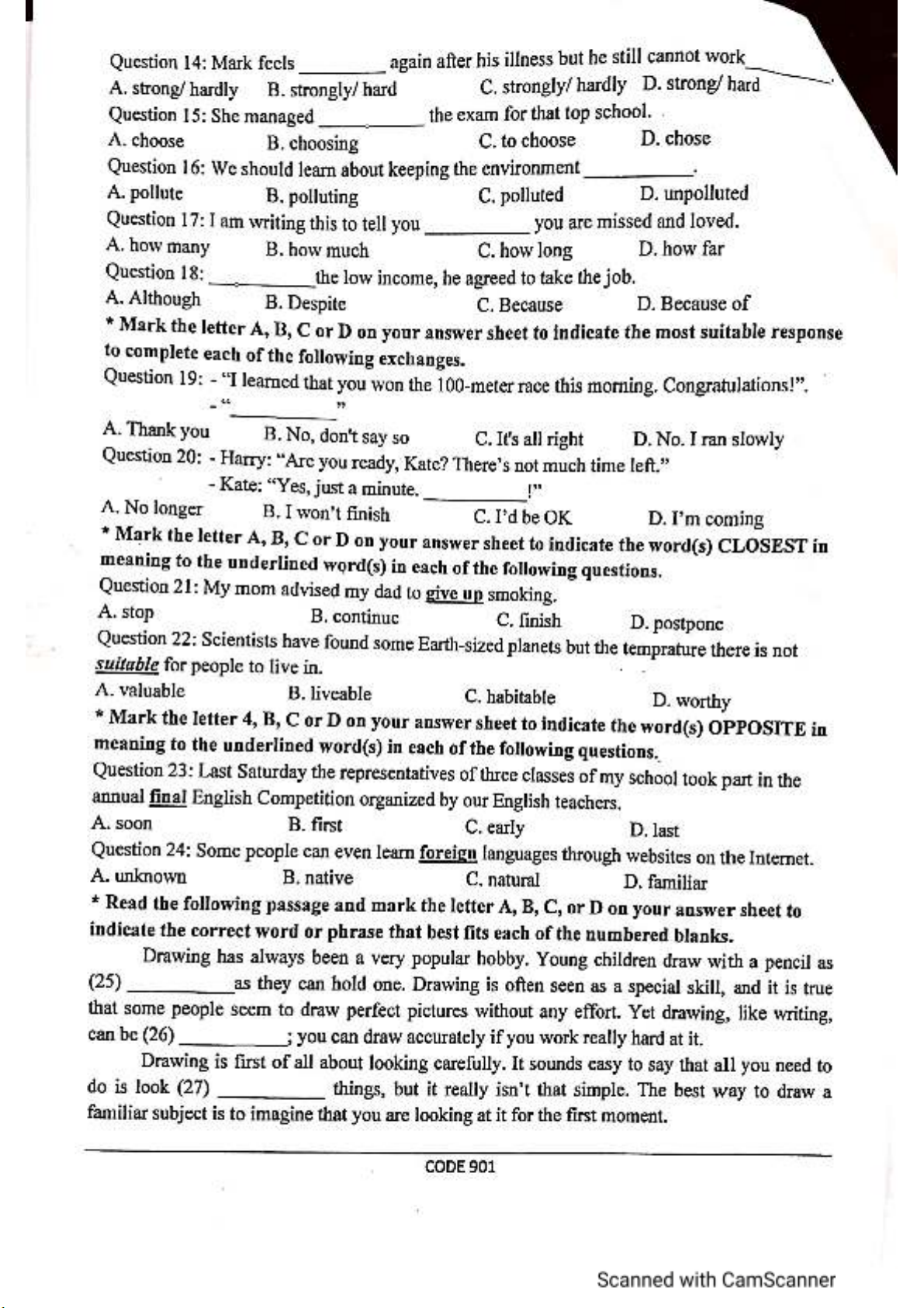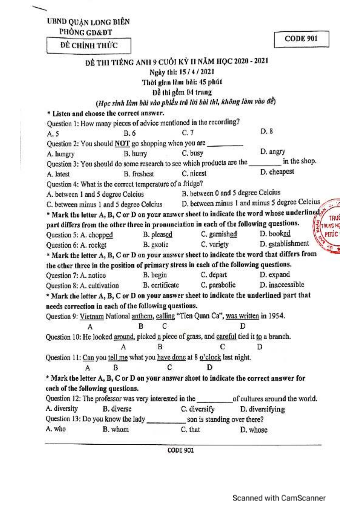 5. Đề thi học kì 2 môn Tiếng Anh lớp 9 năm 2020-2021 có đáp án - Sở