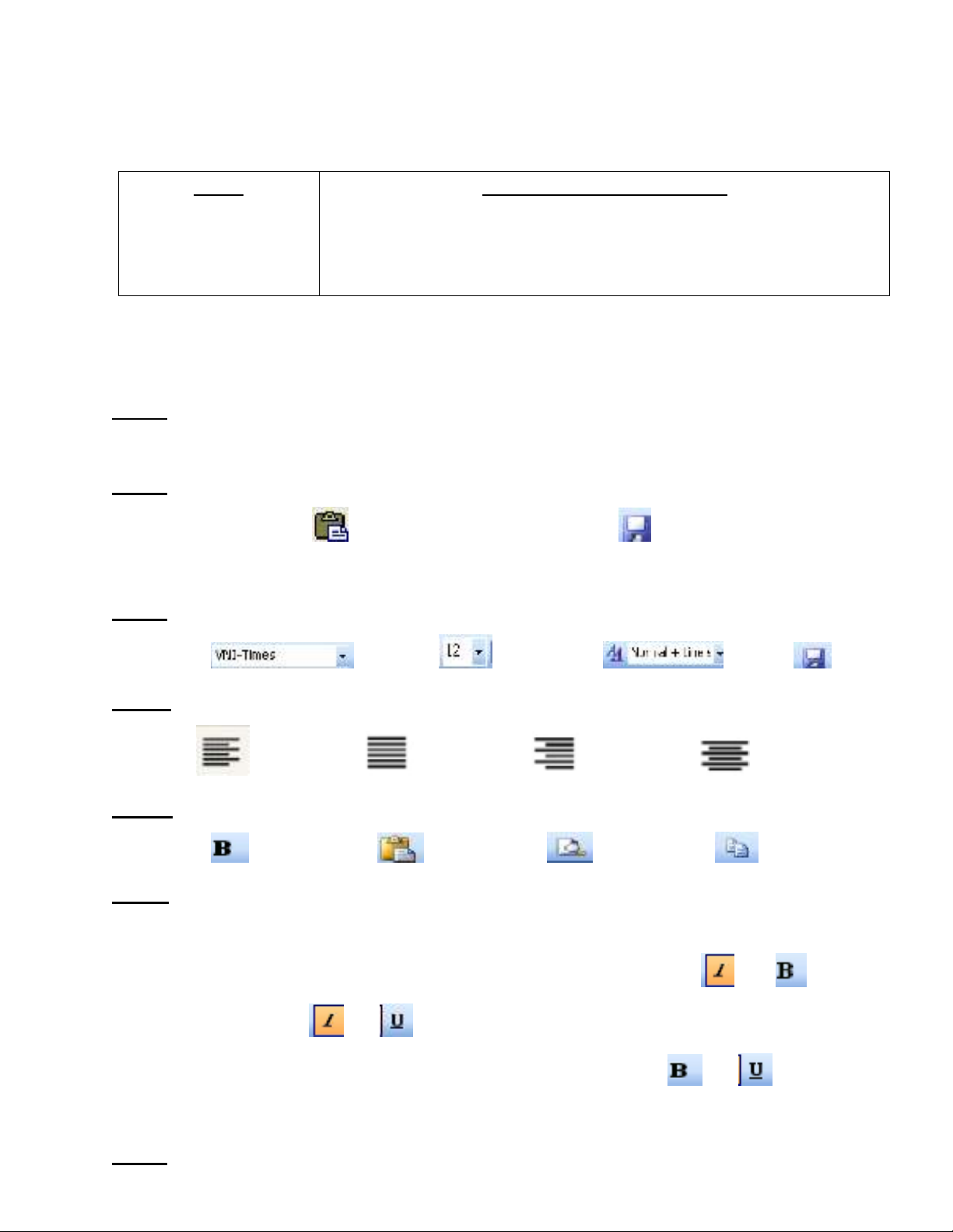 Câu 6 (0,5đ): Sau khi gõ dòng chữ “ Nắng Ba Đình” xong để trình bày chữ đậm và