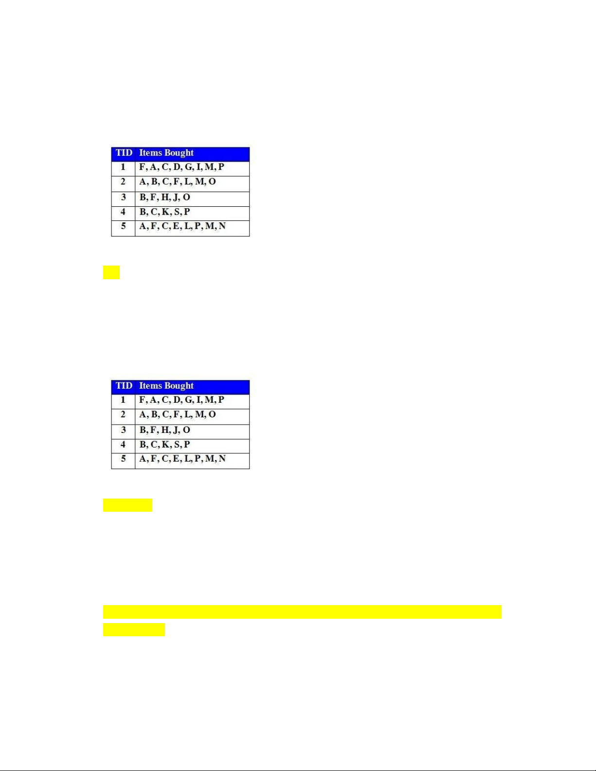 Câu 12: Cho CSDL giao dịch như hình vẽ với Min_Support = 2 (50%).