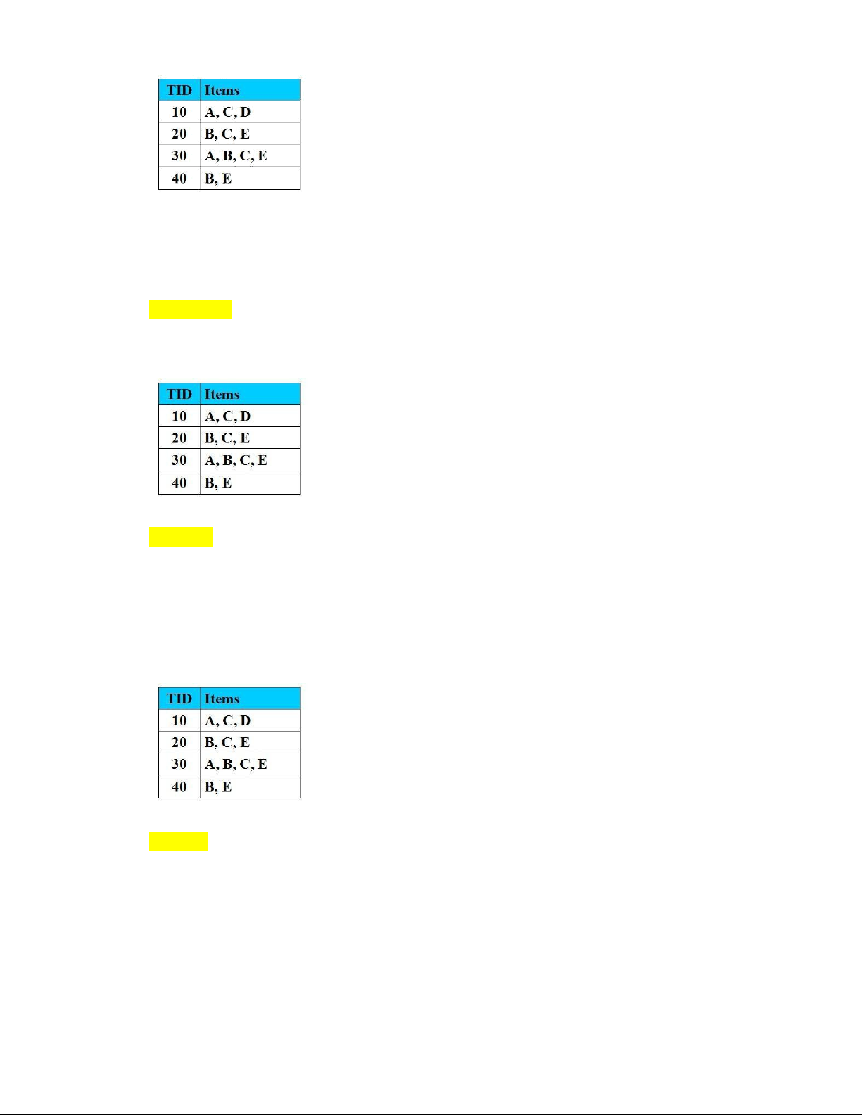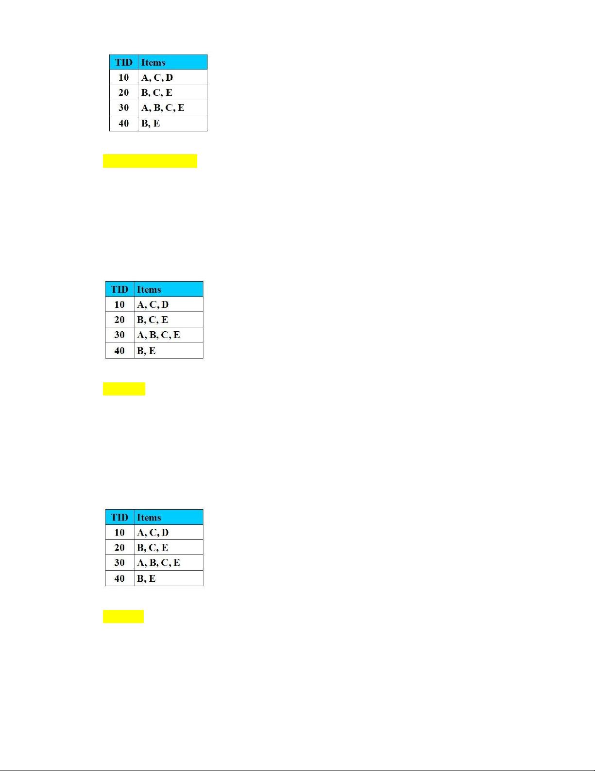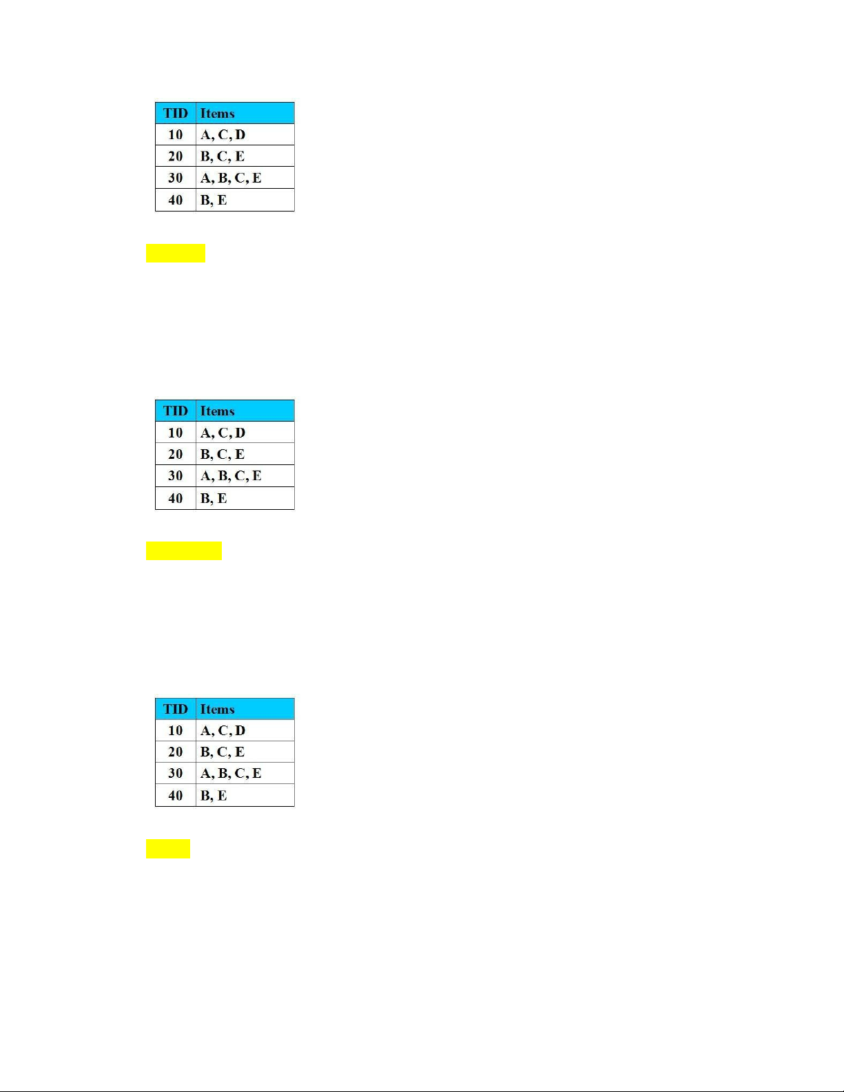 Câu 10: Cho CSDL giao dịch như hình vẽ với Min_Support = 2 (50%).
