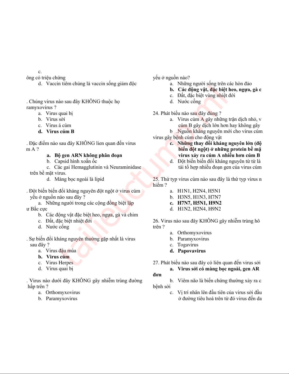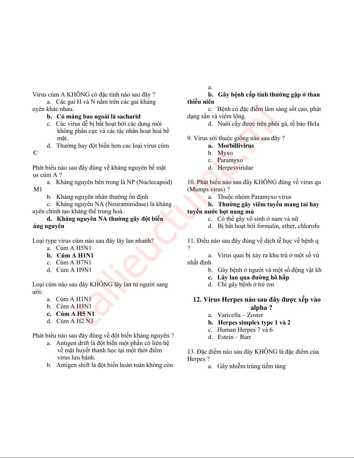 2. Virus cúm A KHÔNG có đặc tính nào sau đây ?