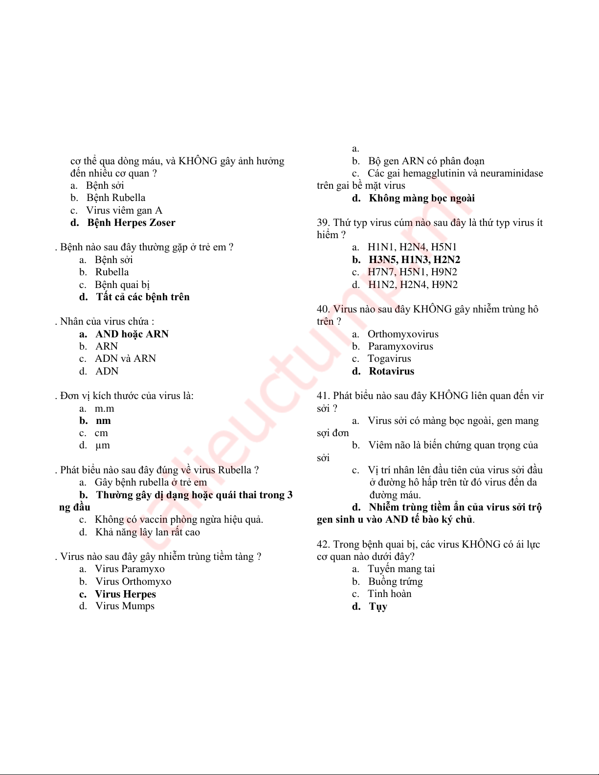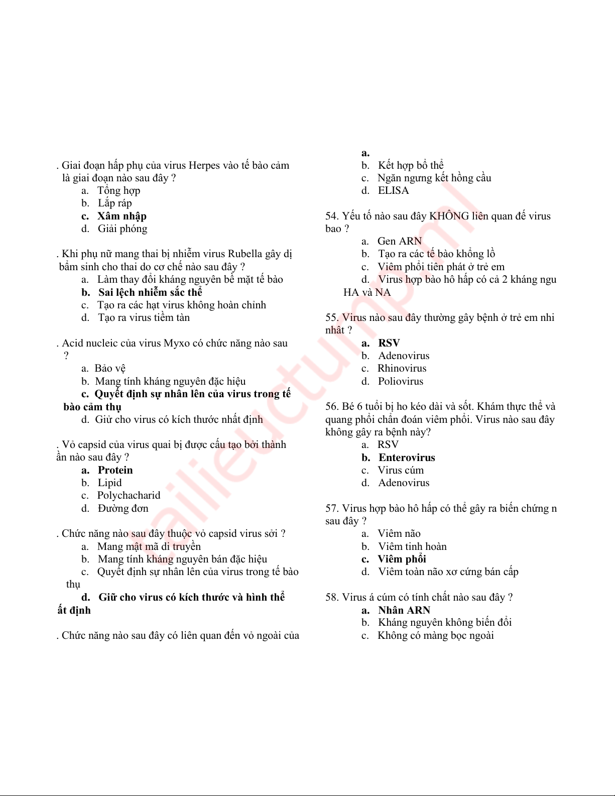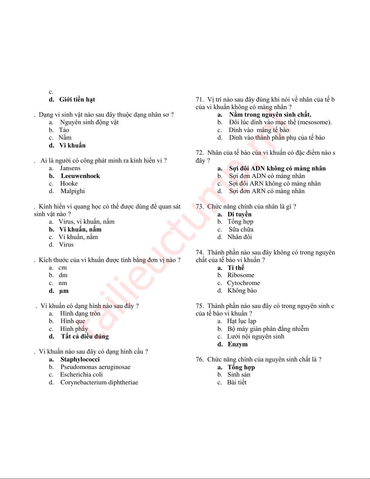 BỘ CÂU HỎI TRẮC NGHIỆM –MÔN VI SINH HỌC- 4 ĐƠN VỊ HỌC TRÌNH