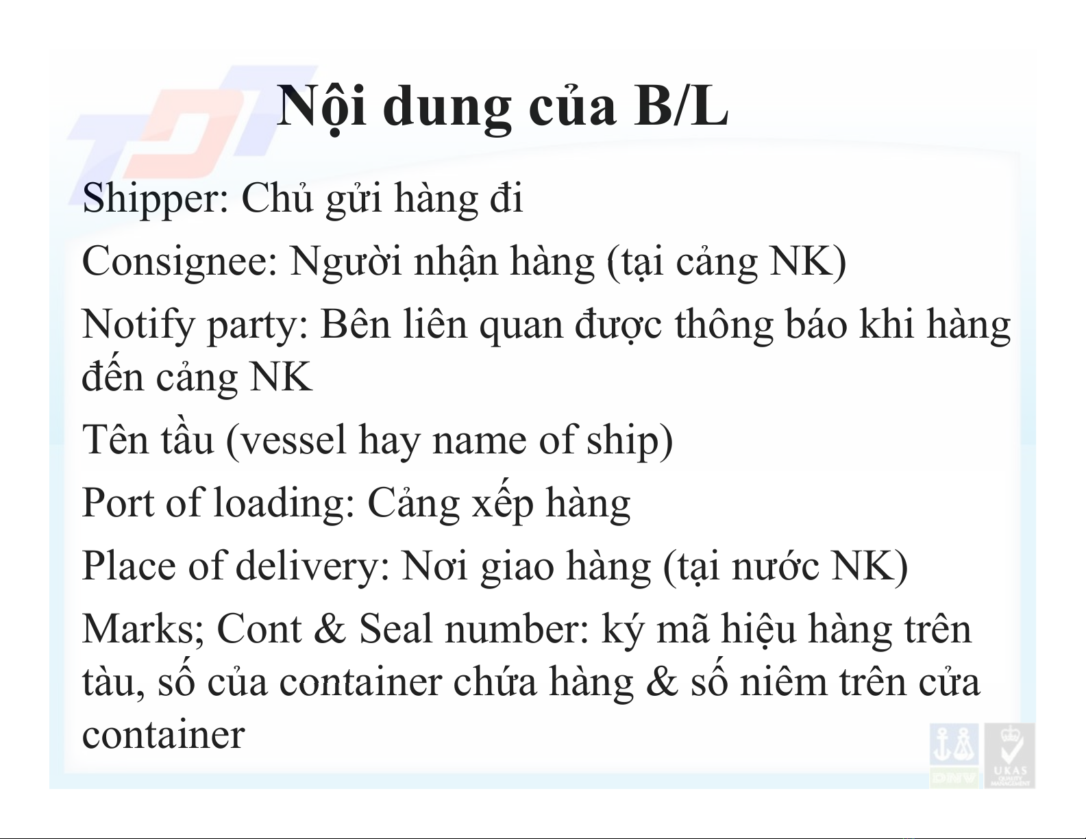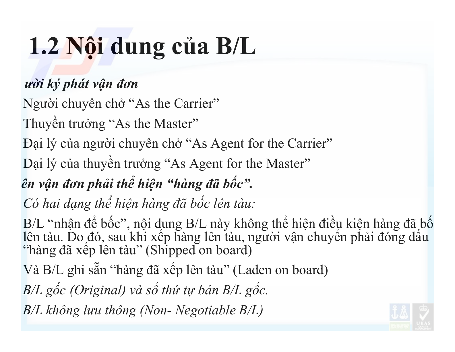 1. VẬN TẢI ĐƠN ĐƯỜNG BIỂN (OCEAN BILL LADING- B/L):