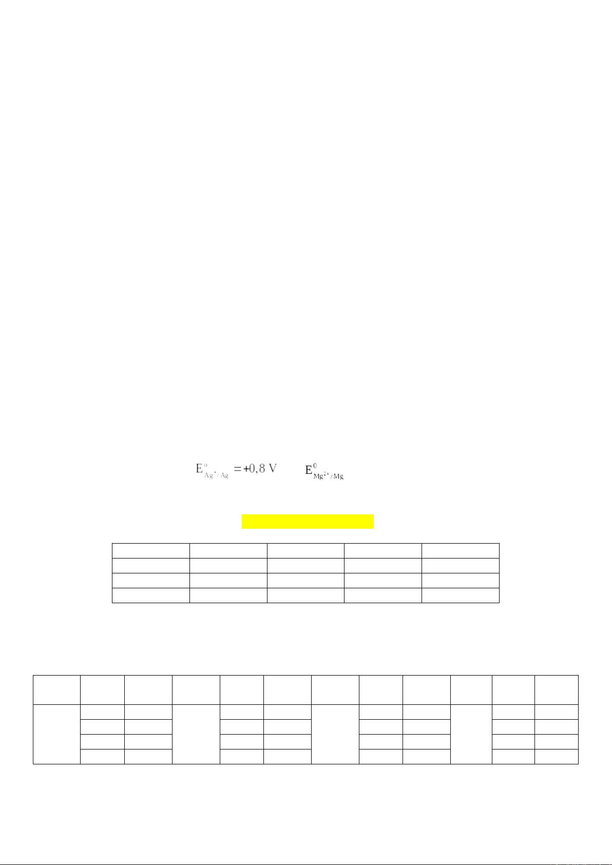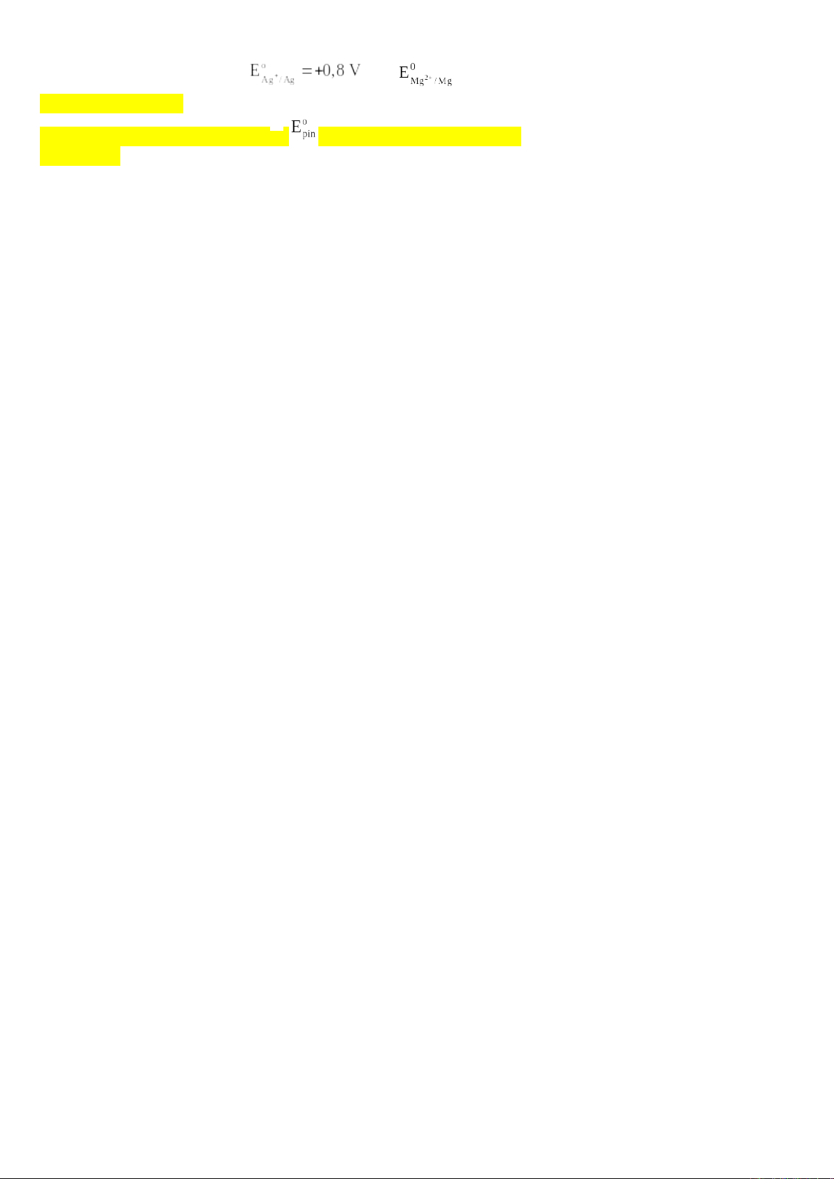 Cathode: (Ag); Anode (Mg) = 0,8 – (–2,37)= 3,17 V.