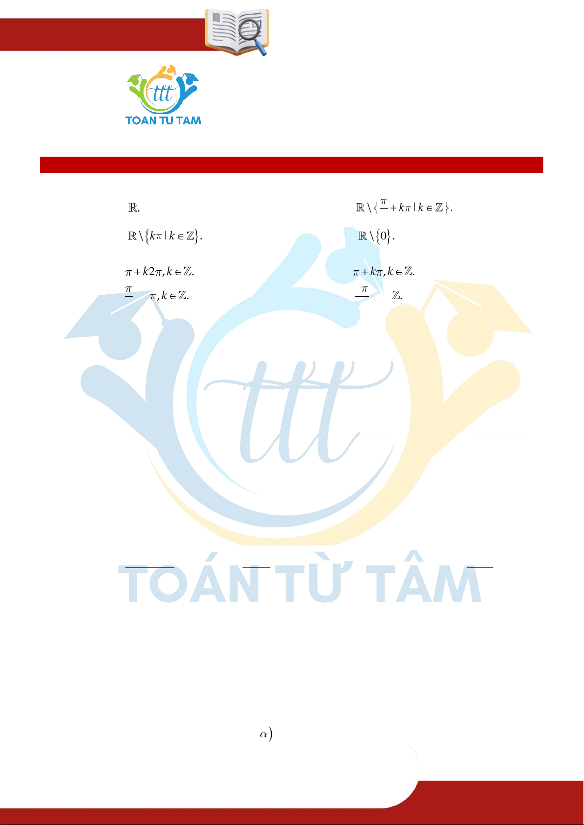 » Câu 1. Tập xác định của hàm số
