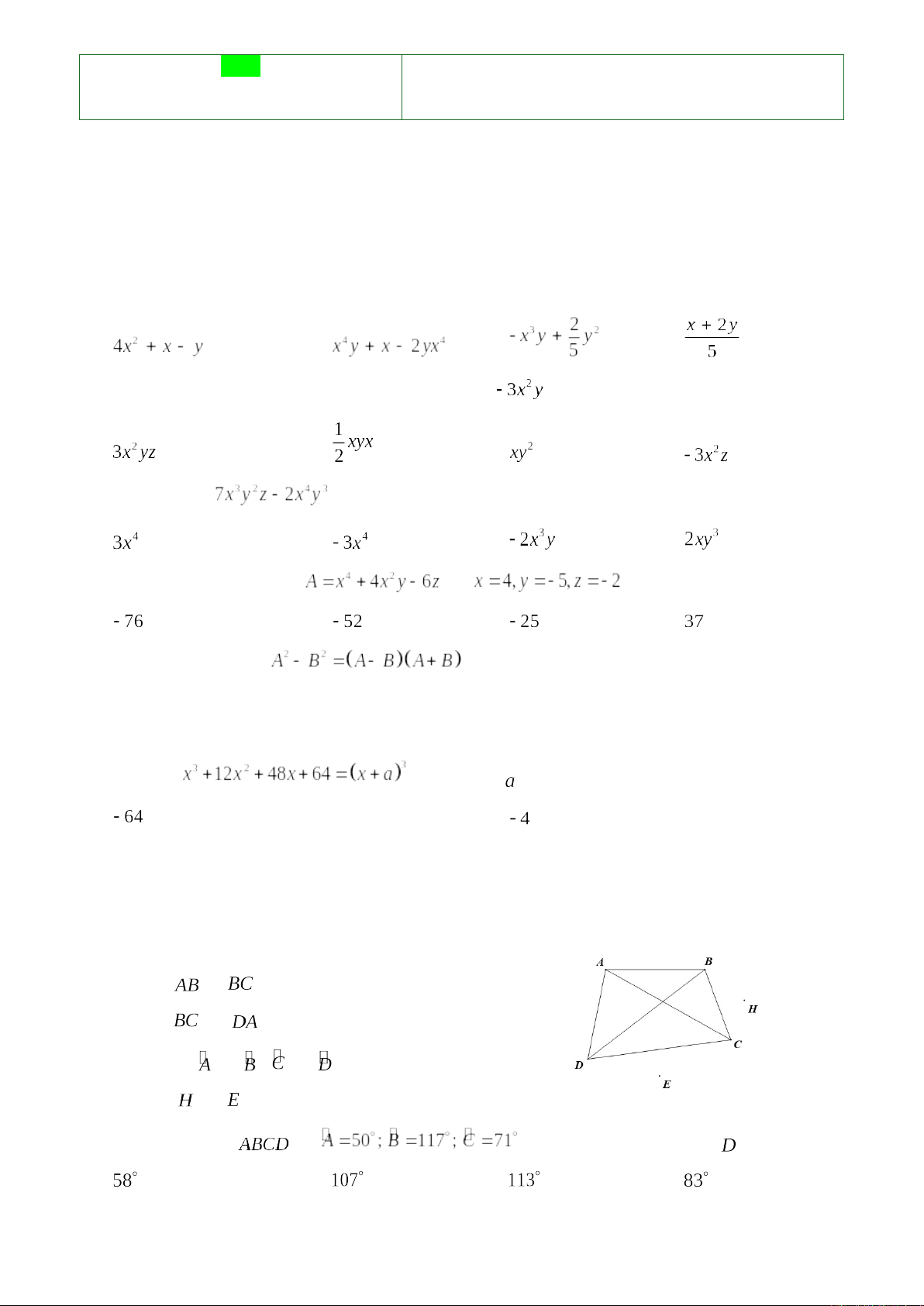Câu 1. Đa thức nào sau đây chưa thu gọn?