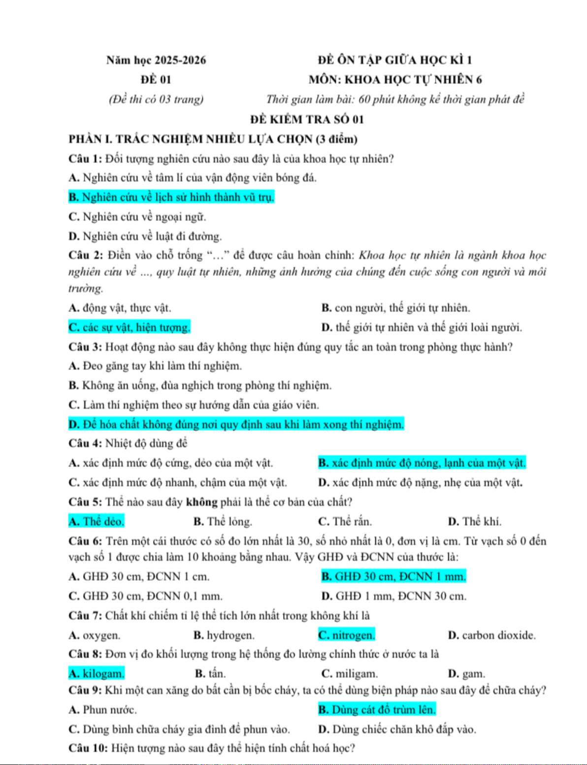 Bộ đề ôn tập giữa kì 1 môn Khoa học tự nhiên lớp 6 bao gồm các câu hỏi trắc nghiệm và tự luận (cấu trúc mới) nhằm kiểm tra kiến thức của học sinh về các chủ đề đã học. Các đề kiểm tra đều nhằm đánh giá khả năng vận dụng kiến thức và kỹ năng giải quyết vấn đề của học sinh trong môn Khoa học tự nhiên.