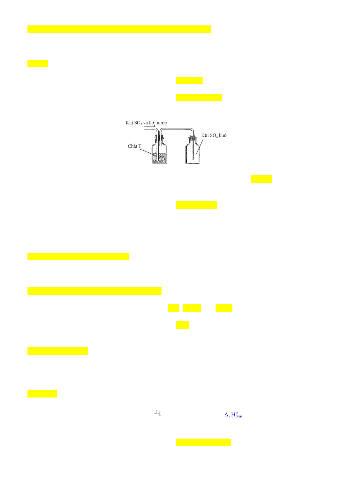 Câu 9: Sau khi điều chế, khí SO2 có lẫn hơi nước được dẫn qua bình làm khô chứa các hạt chất rắn T rồi thu vào bình