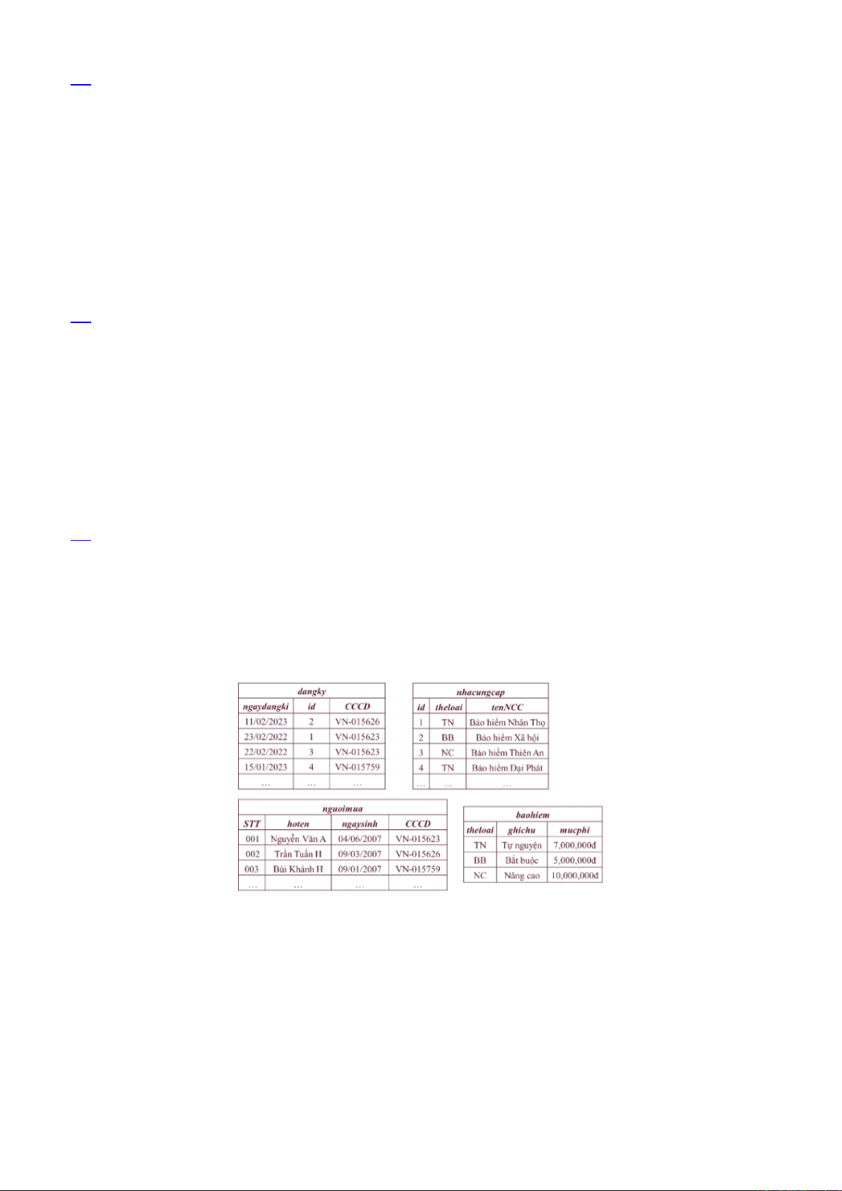 nhất, cho biết các gói bảo hiểm mà người đó đăng kí. Mỗi nhà cung cấp chỉ bán một loại bảo hiểm và