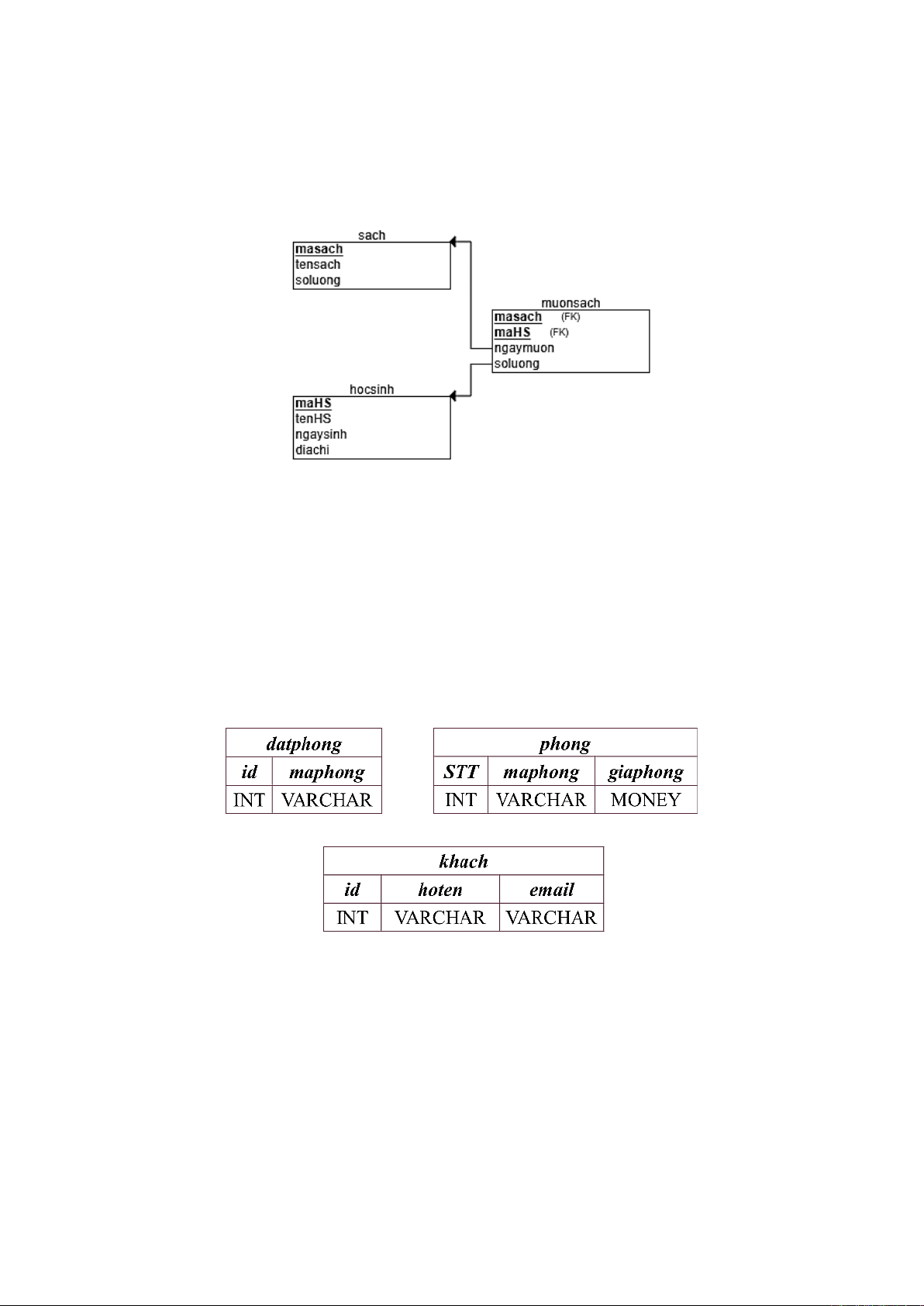 lưu thông tin về tên học sinh, mã học sinh, ngày sinh, địa chỉ nhà; sach(tensach, masach, soluong) lưu