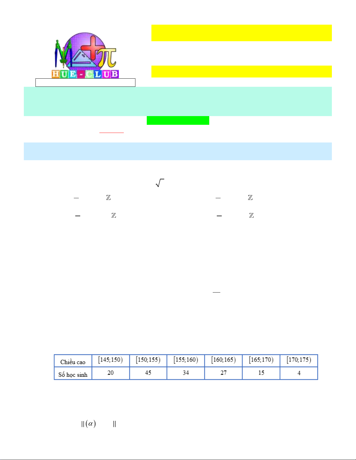 Câu 7: Cho mẫu số liệu về chiều cao (cm) của các học sinh nữ trong khối