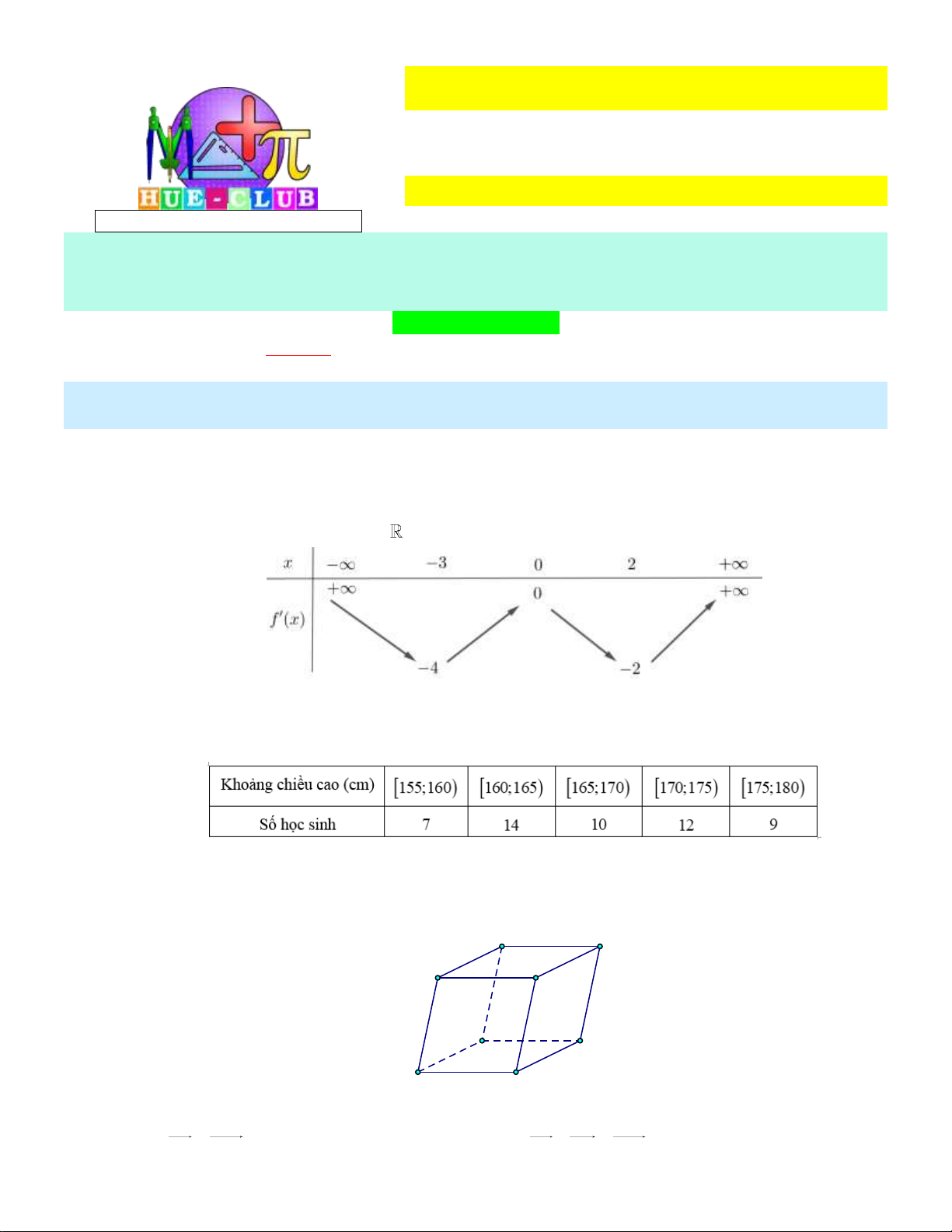 Câu 3: Khảo sát chiều cao (cm) của 52 học sinh khối 12 thu được mẫu số liệu ghép nhóm sau