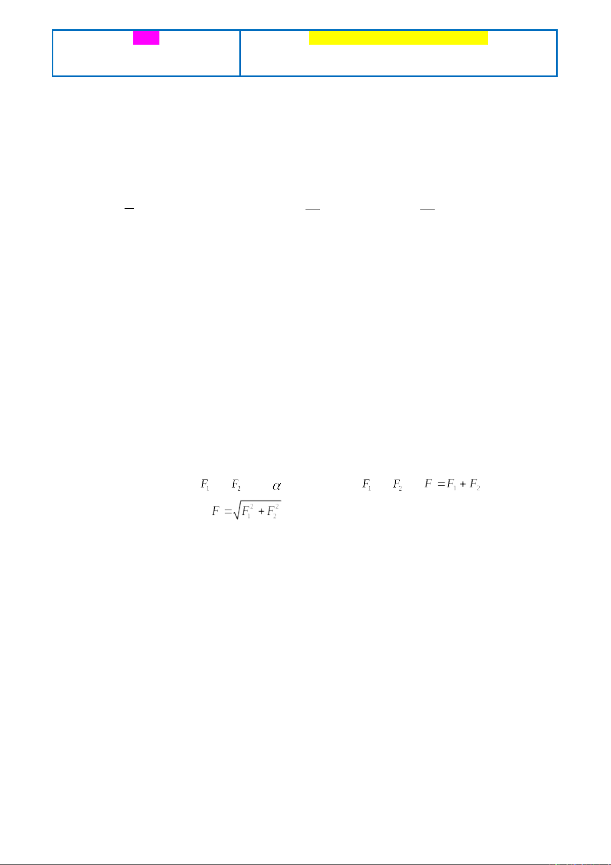Câu 7. Có hai lực đồng quy và . Gọi là góc hợp bởi và và . Nếu độ lớn hợp
