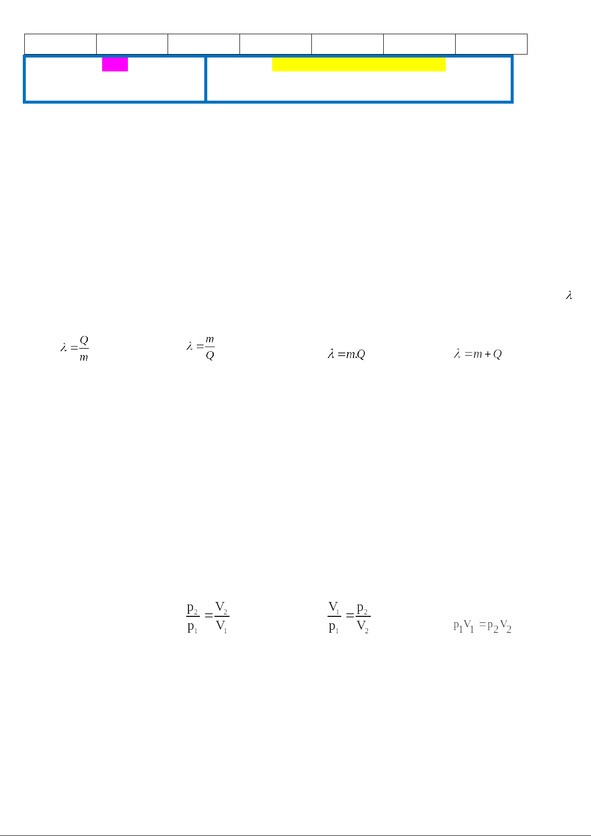 Câu 5: Q là nhiệt lượng cần để làm m kg nóng chảy hoàn toàn ở nhiệt độ nóng chảy. Nhiệt nóng chảy riêng